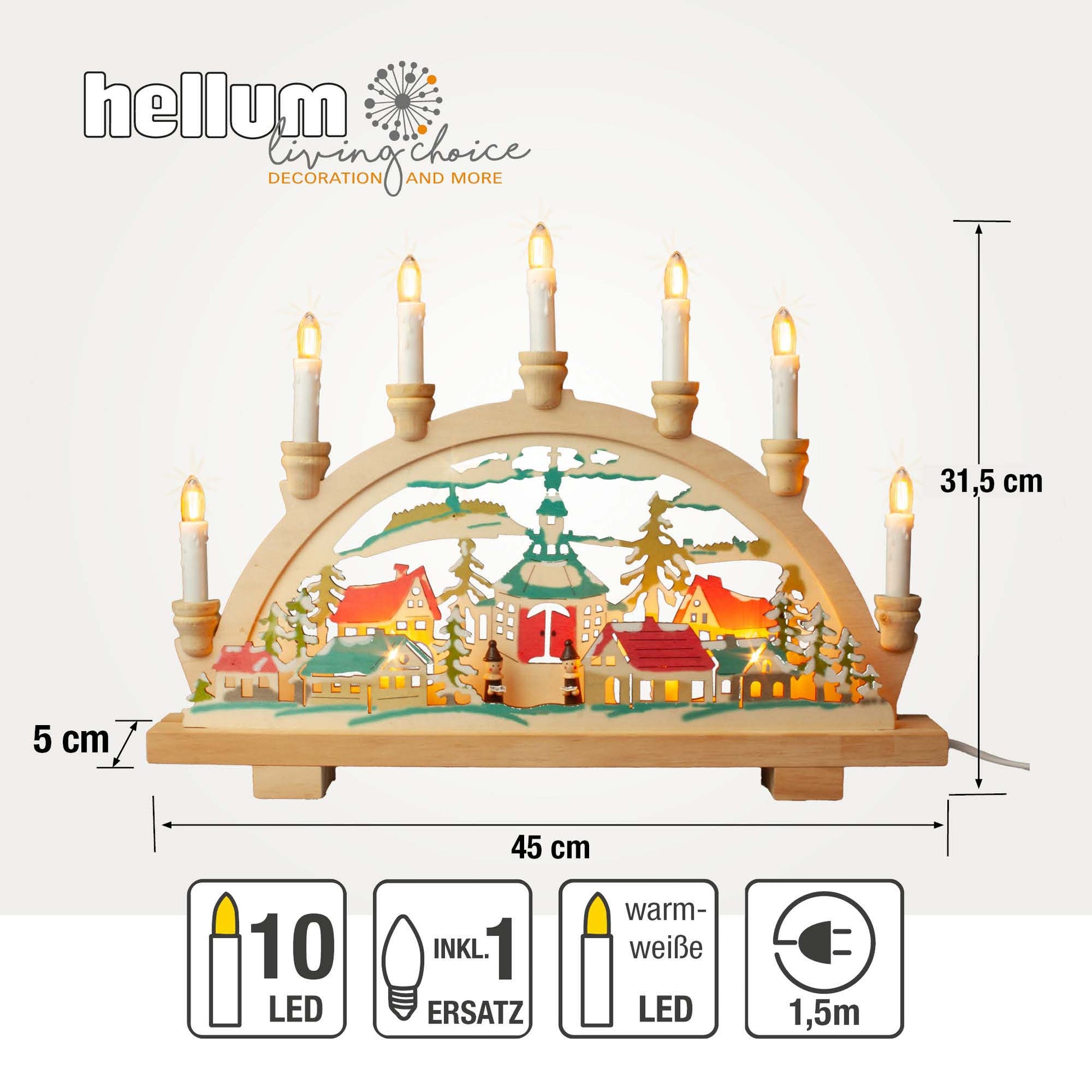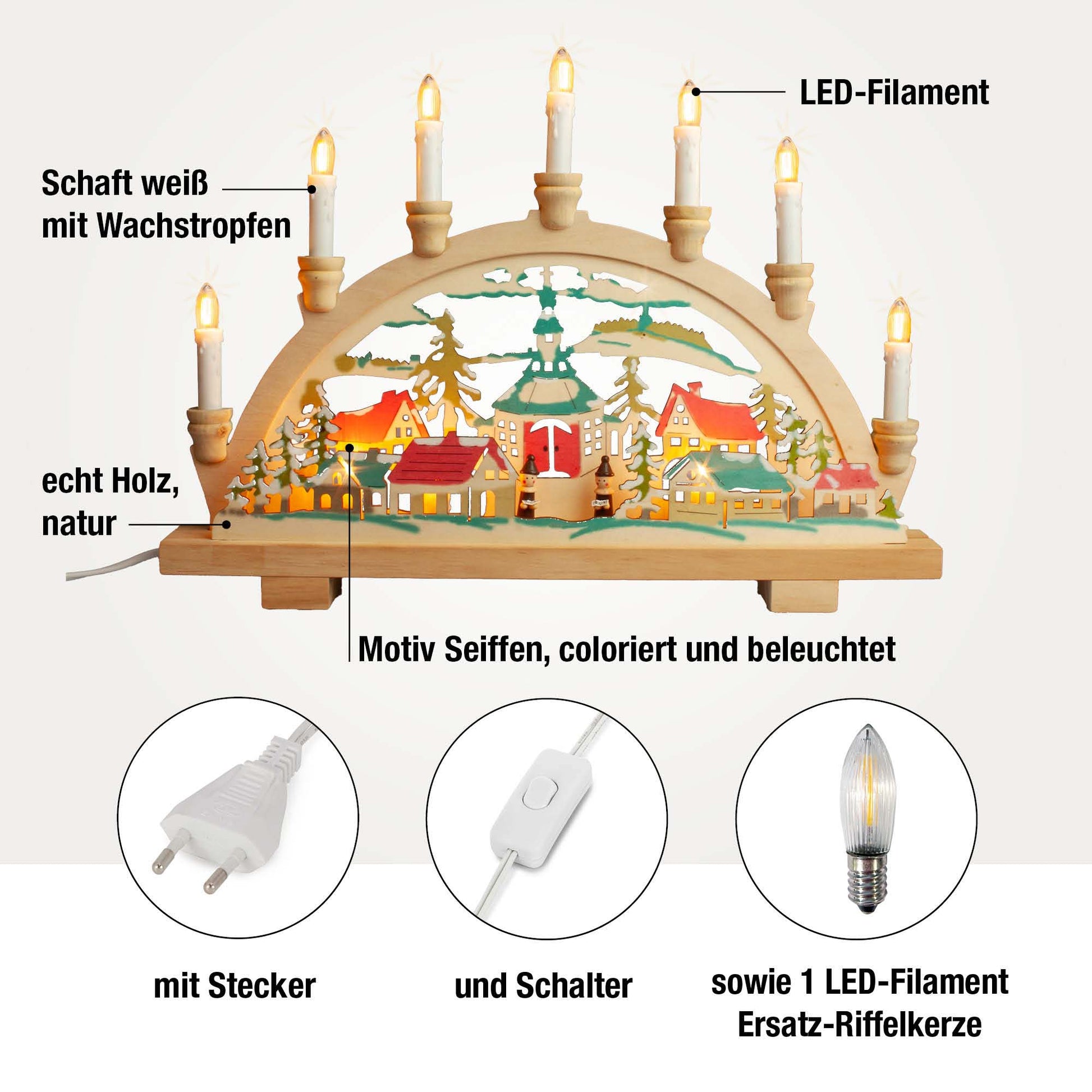 10-tlg. Holzleuchter "Seiffen", natur/bunt, LED Filament Steckerzuleitung 1,5 m