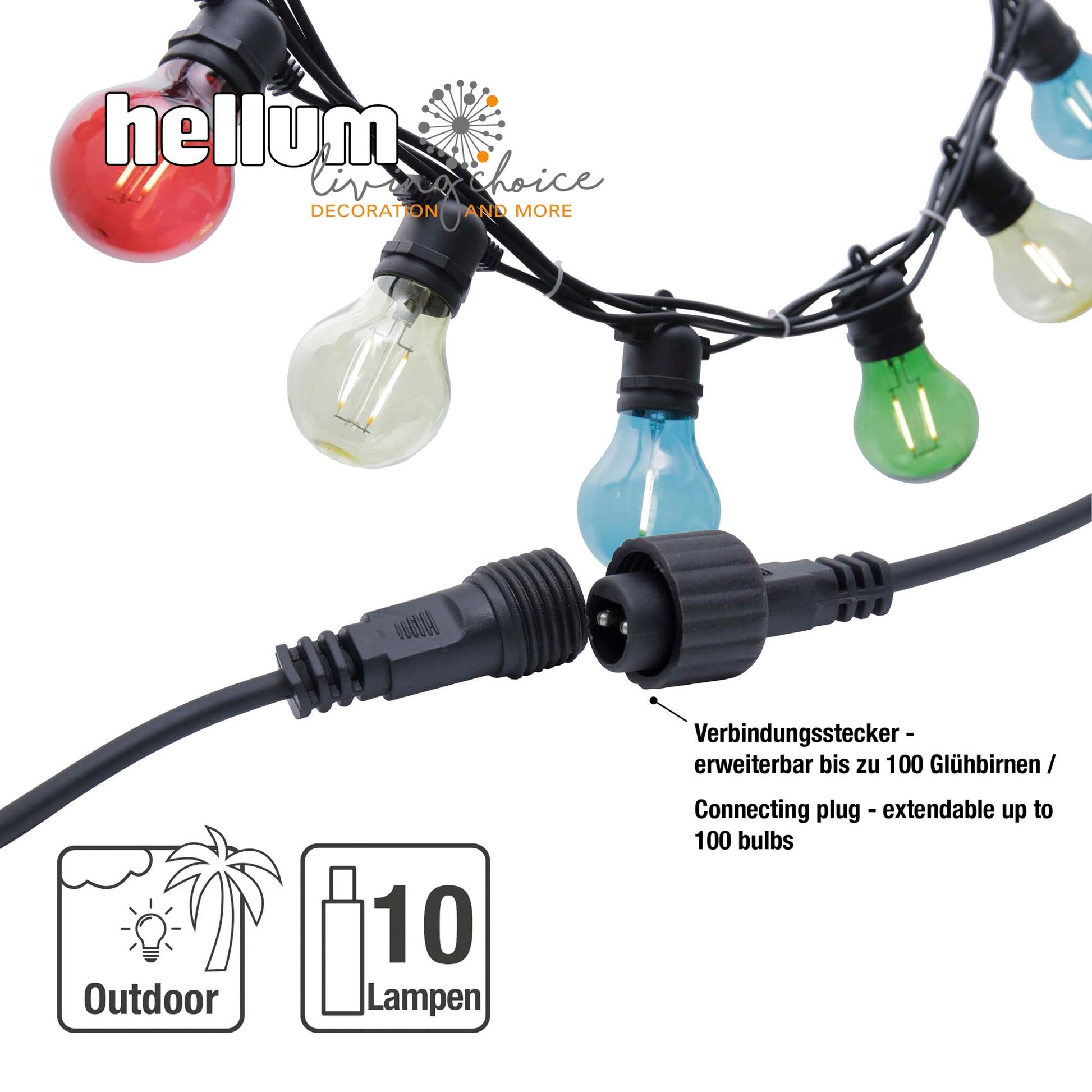 LED-Filament Party-Lichterkette, 10 LEDs bunt, Außen-Transformator