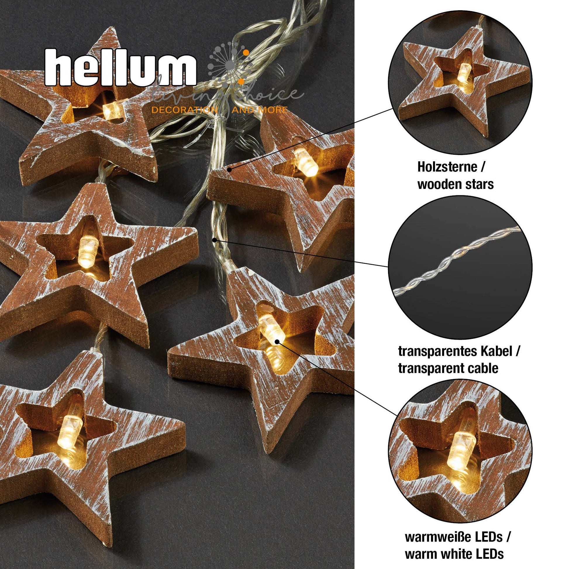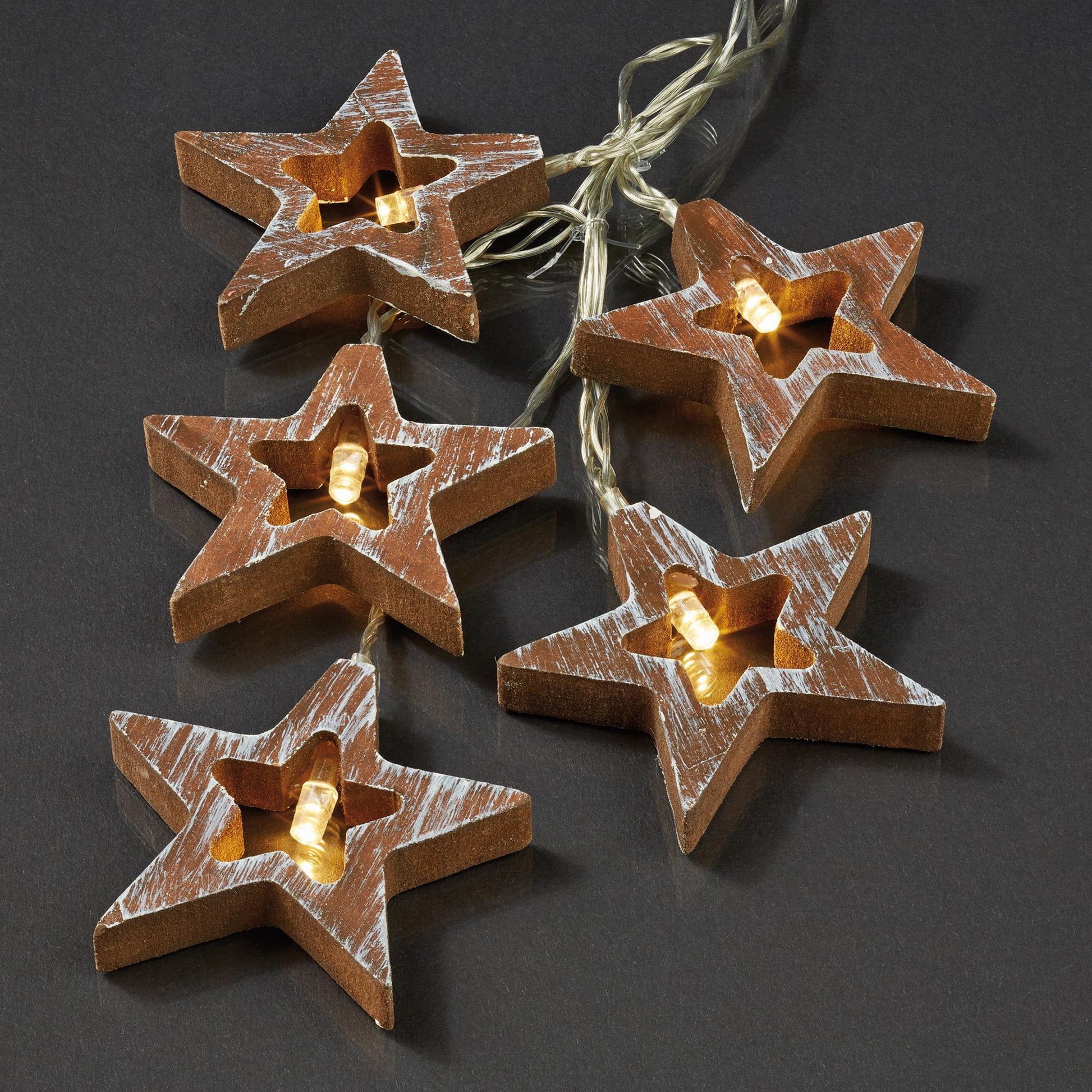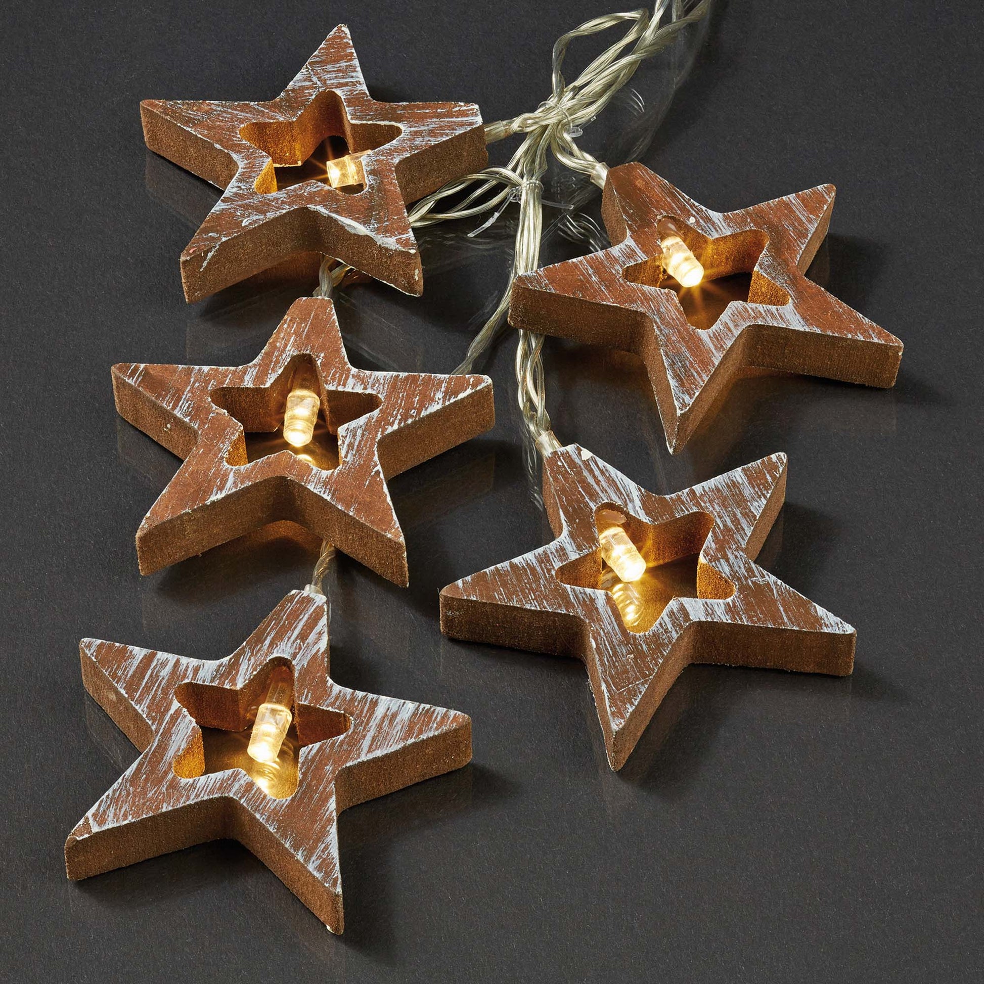 LED-Lichterkette mit Holzsternen, 10 LEDs ww, batteriebetrieben