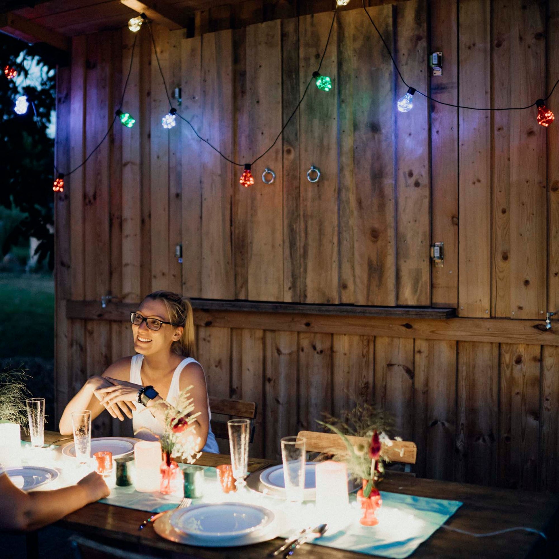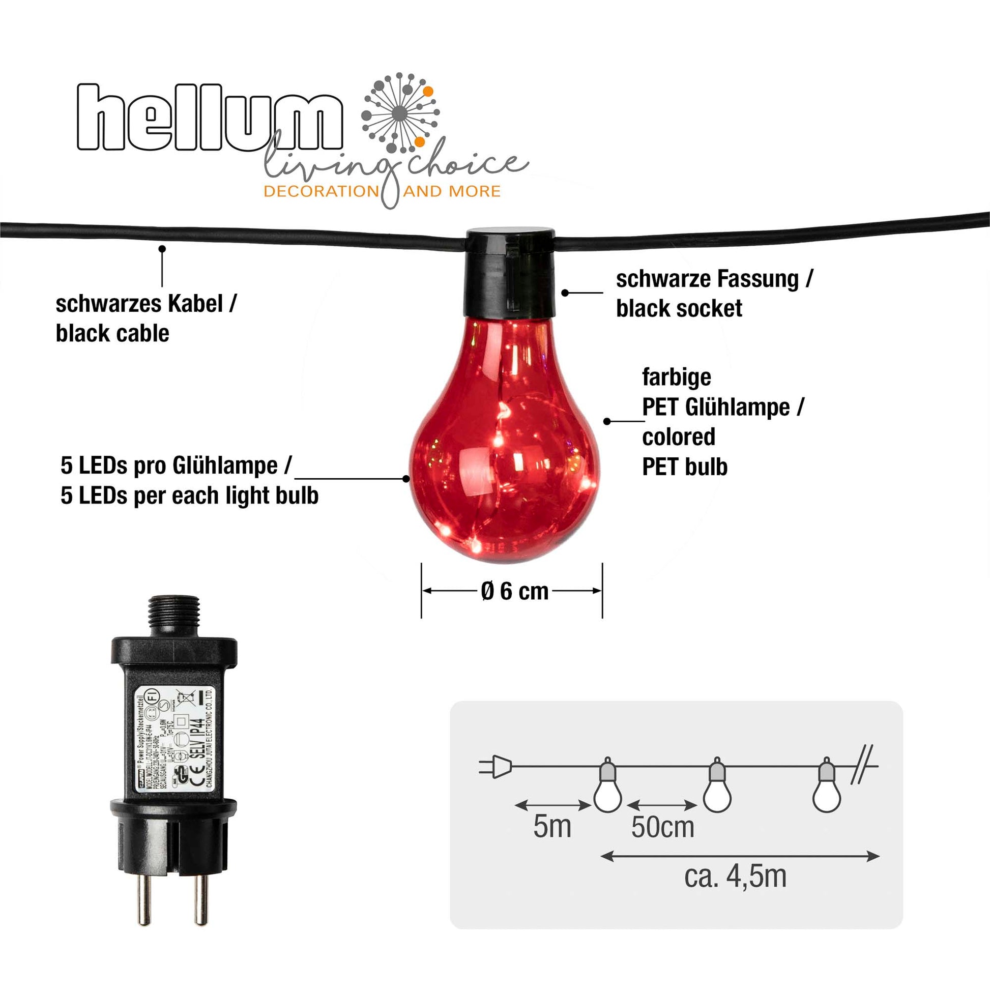 Der Hingucker auf jeder Garten-Party: 10 bunte Glühbirnen-Imitate, gespickt mit 5 hellen LEDs - so wird jedes Fest zur Augenweide. Die Beleuchtung ist sowohl im Innen-, als auch im Außenbereich einsetzbar. Der Phantasie sind quasi keinerlei Grenzen gesetzt. Verleihen Sie Ihrer Party das besondere Etwas - mit dieser Lichterkette rücken Sie Ihre Party auf jeden Fall in den Mittelpunkt!