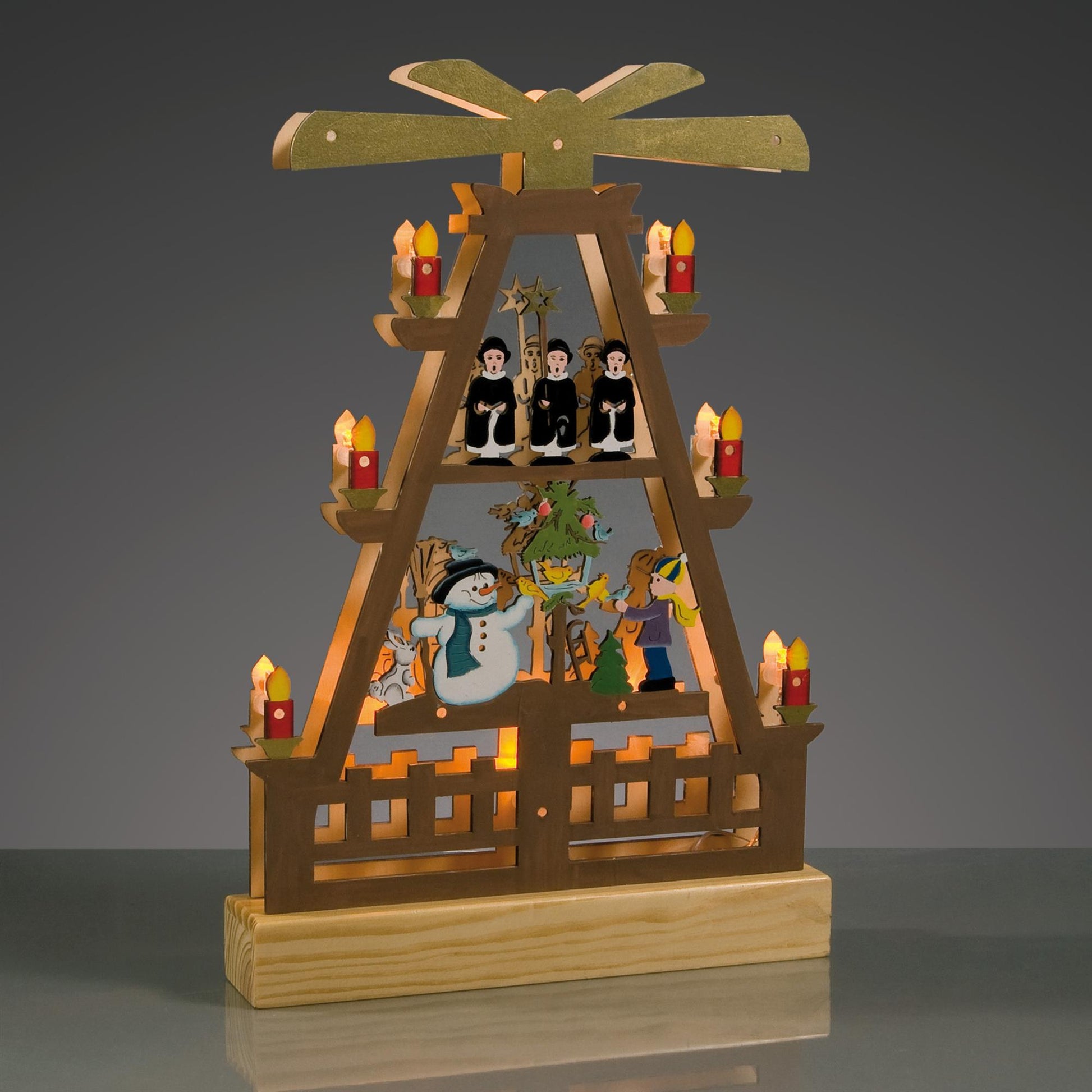 LED-Pyramide mit Sternsinger, 10 LEDs ww, batteriebetrieben