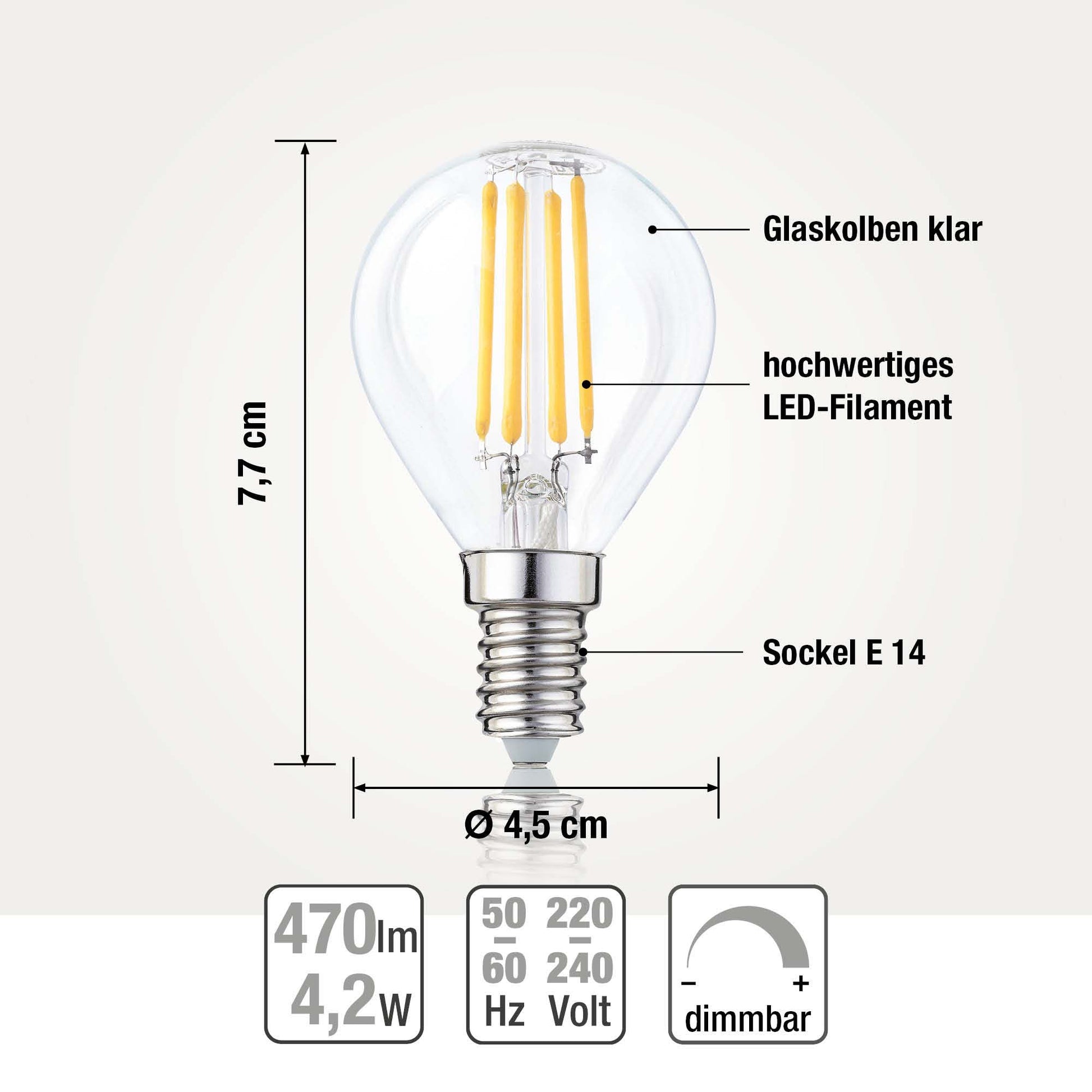 10er-Set LED-Glühlampe G45, E14, 4,2 W, 470 lm, 4 Filamente 220773