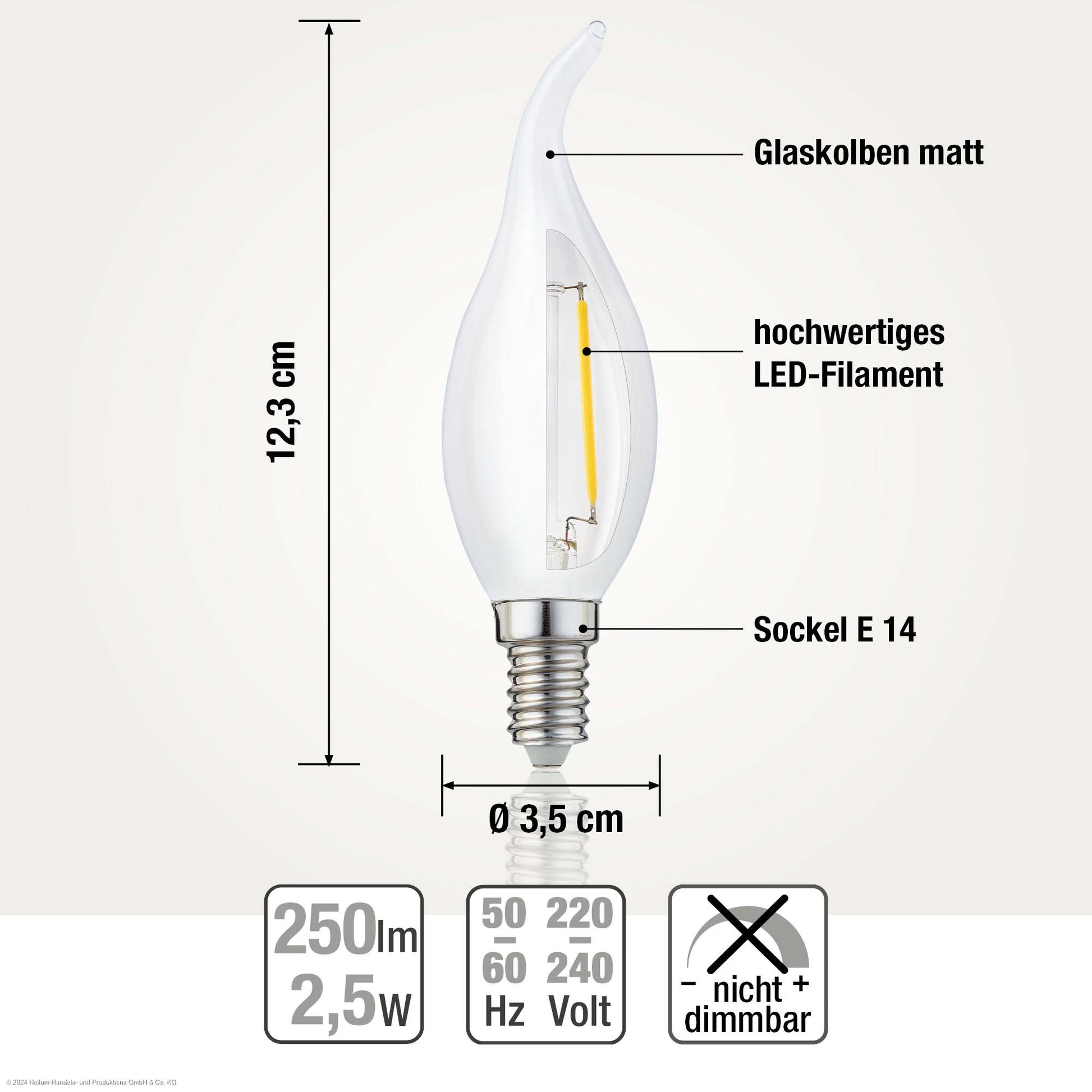 10er-Set_LED-Windstoßlampe CA35, E14, 2,2 W, 250 lm, matt