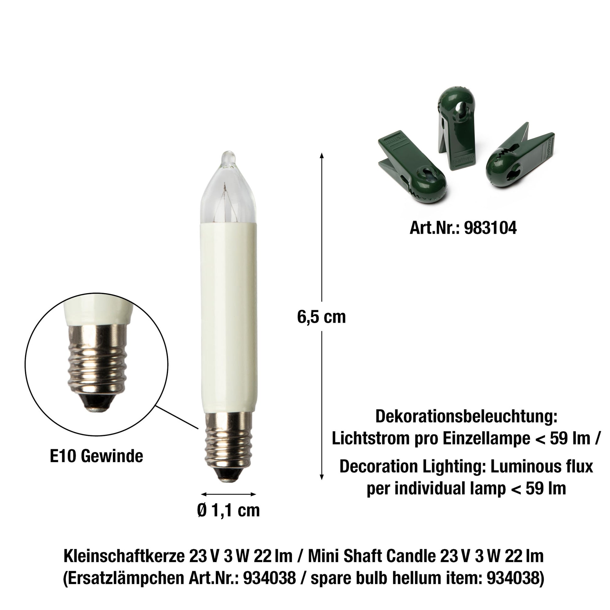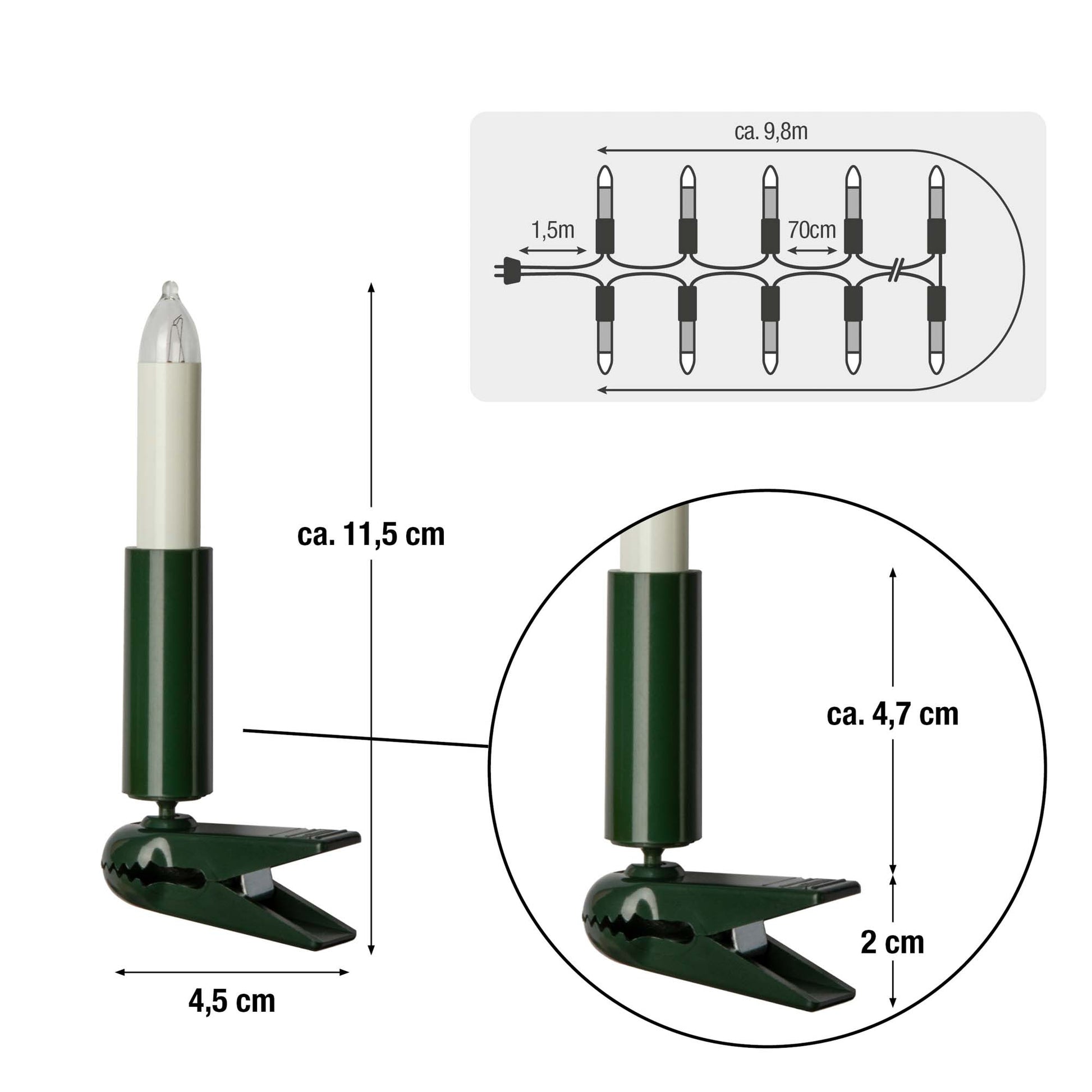 15-tlg. Kleinschaftkerzenkette, klare Lampen, für innen, teilbarer Stecker