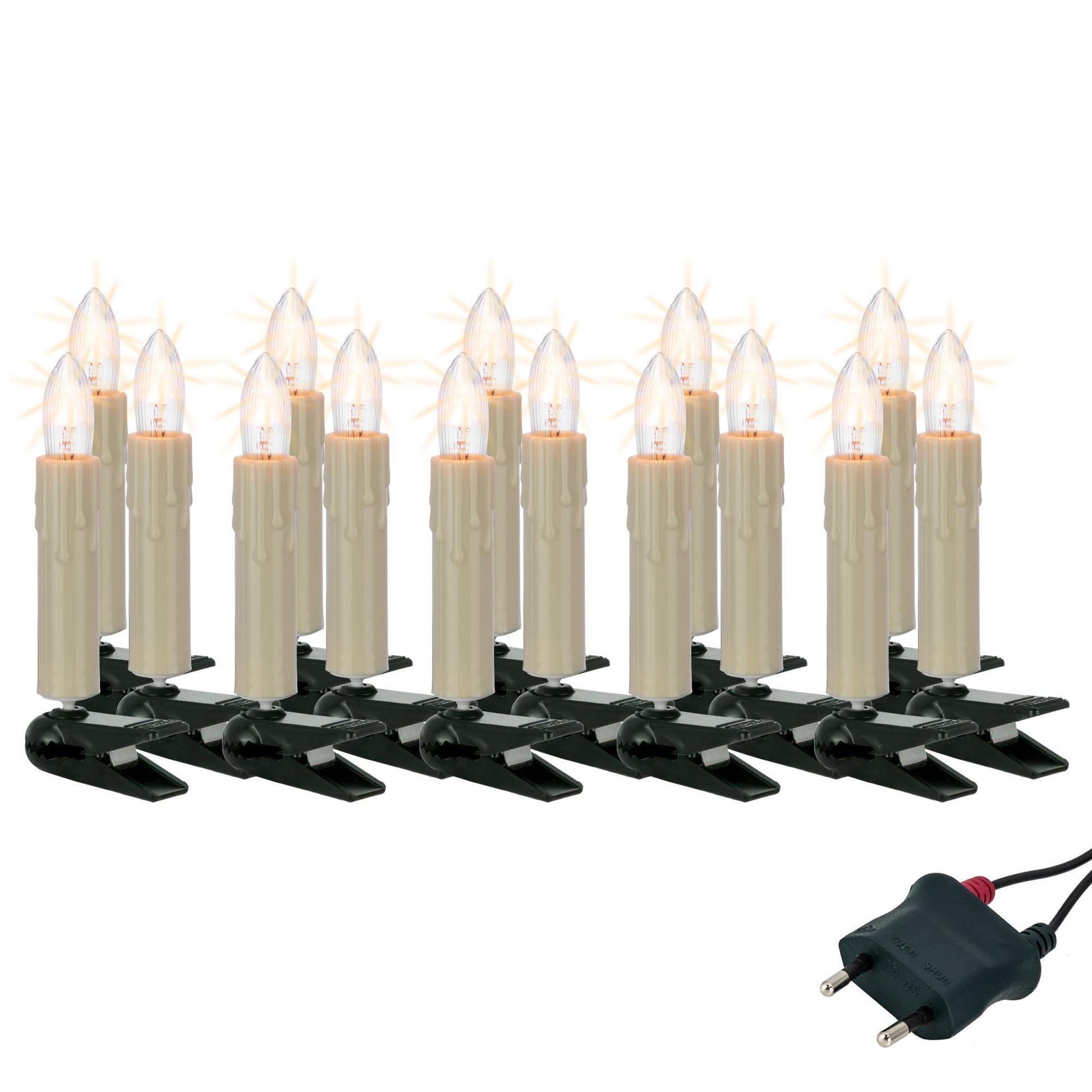 Riffelkette mit Tropfen elfenbein, 15 Lampen klar, für innen, teilbarer Stecker