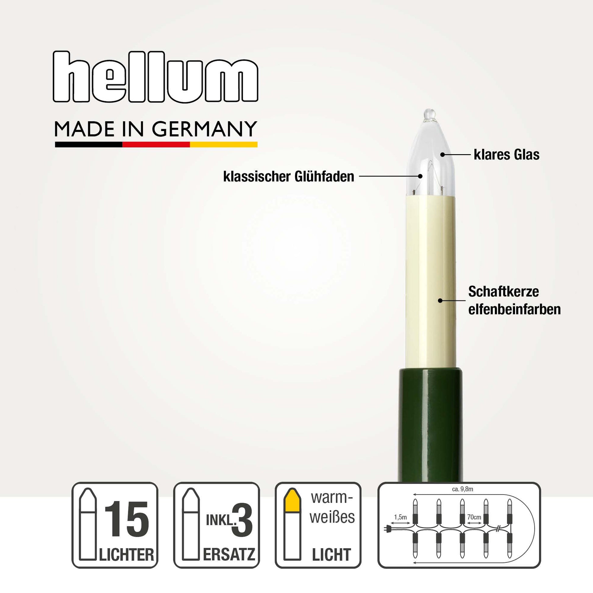 Stimmungsvolle Weihnachten - Das warme Licht der made in Germany Lichterkette innen mit 15 Weihnachtskerzen, einer beleuchteten Länge von 9,8m und grünem Kabel lässt jeden Tannenbaum weihnachtlich erstrahlen