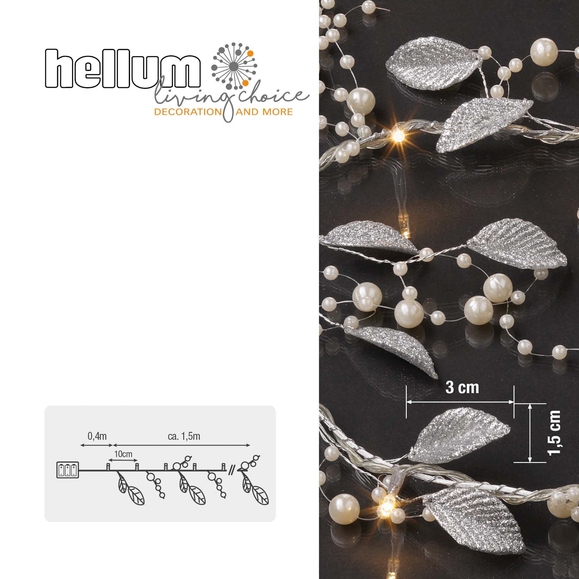 LED-Lichterkette mit silberfarbenen Blättern und Kugeln, 16 LEDs ww, batterieb.