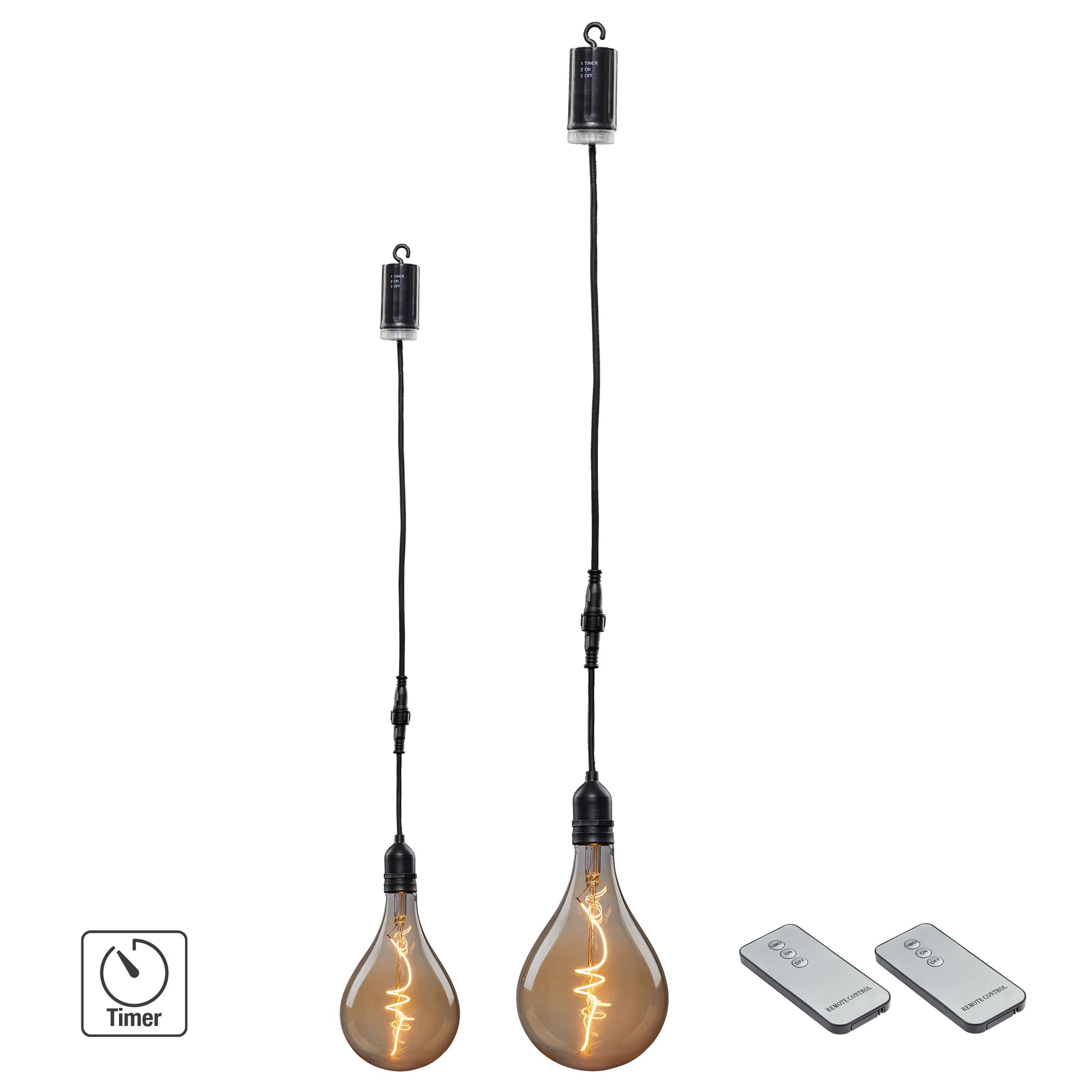 2-tlg. Set Vintage-Hängelampen, goldfarbene Lampen, mit LED-Spiral-Strang, A100 + A130, 10x20 + 13x23 cm, batteriebetrieben, für außen