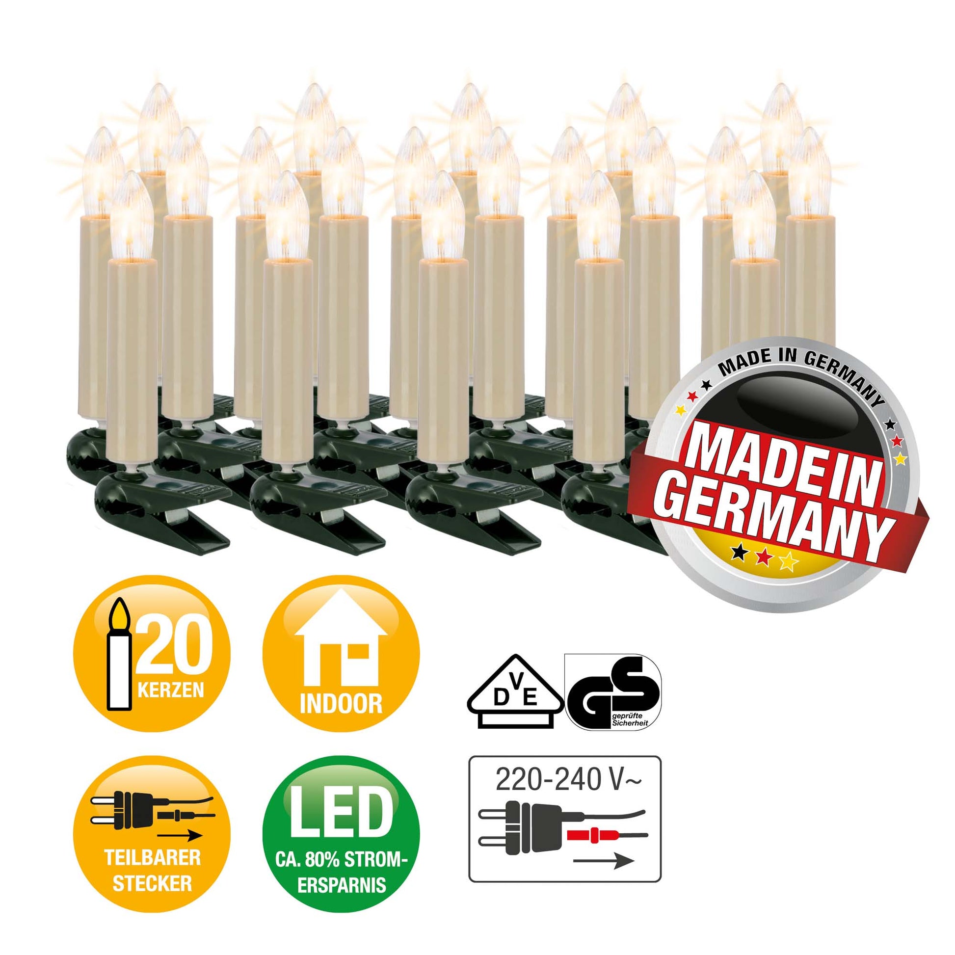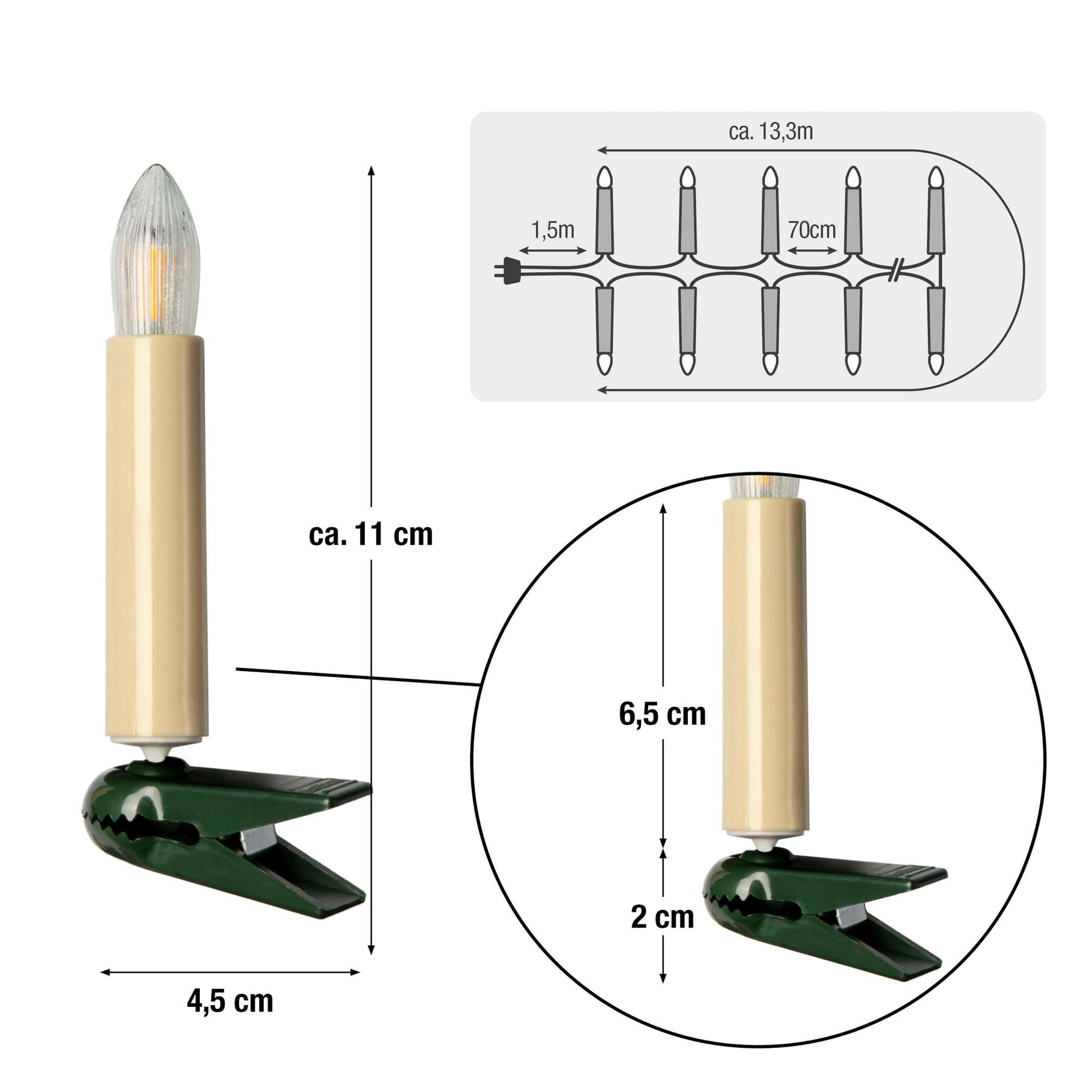 20-tlg. LED-Filament-Riffelkerzenkette, warm-weiß, für innen, teilbarer Stecker