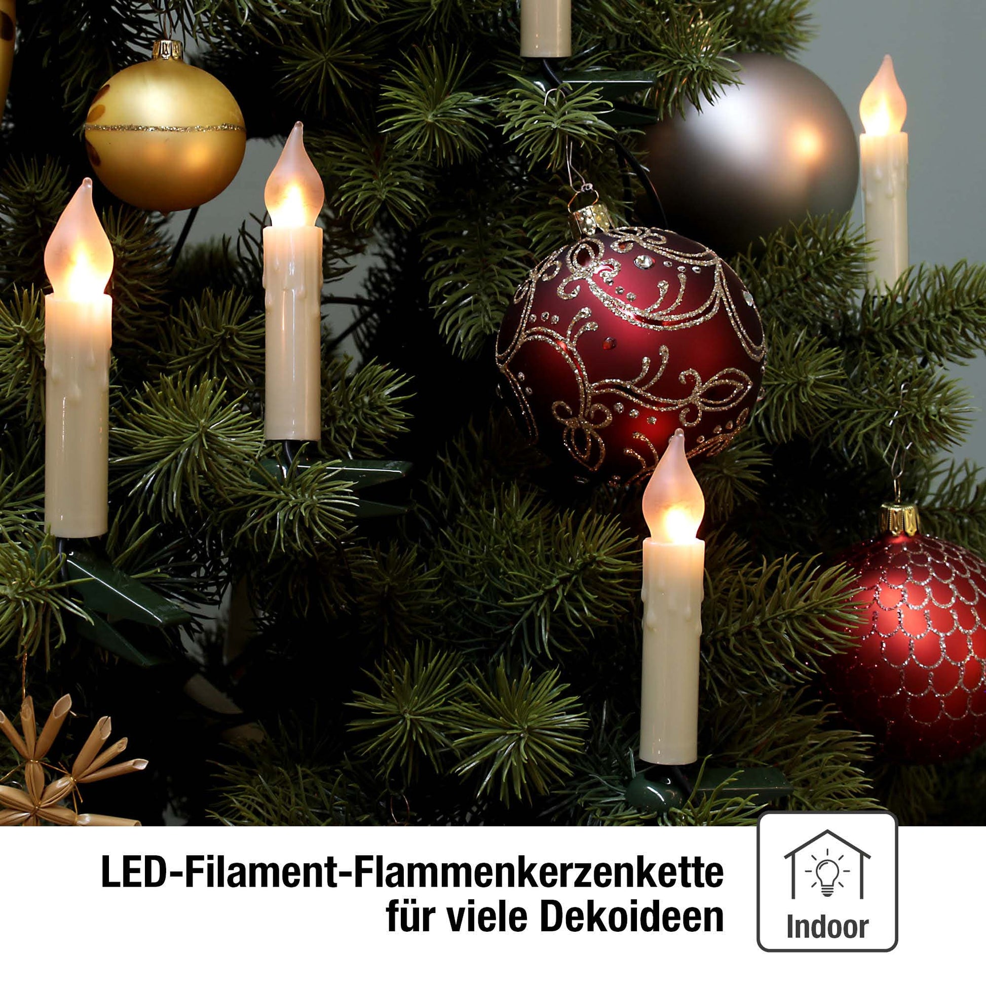 Lichterkette Weihnachtsbaum LED Filament mit Flammeneffekt innen 20 teilig, Made in Germany, Riffelkerzen, mit Wachstropfen, perlelfenbein