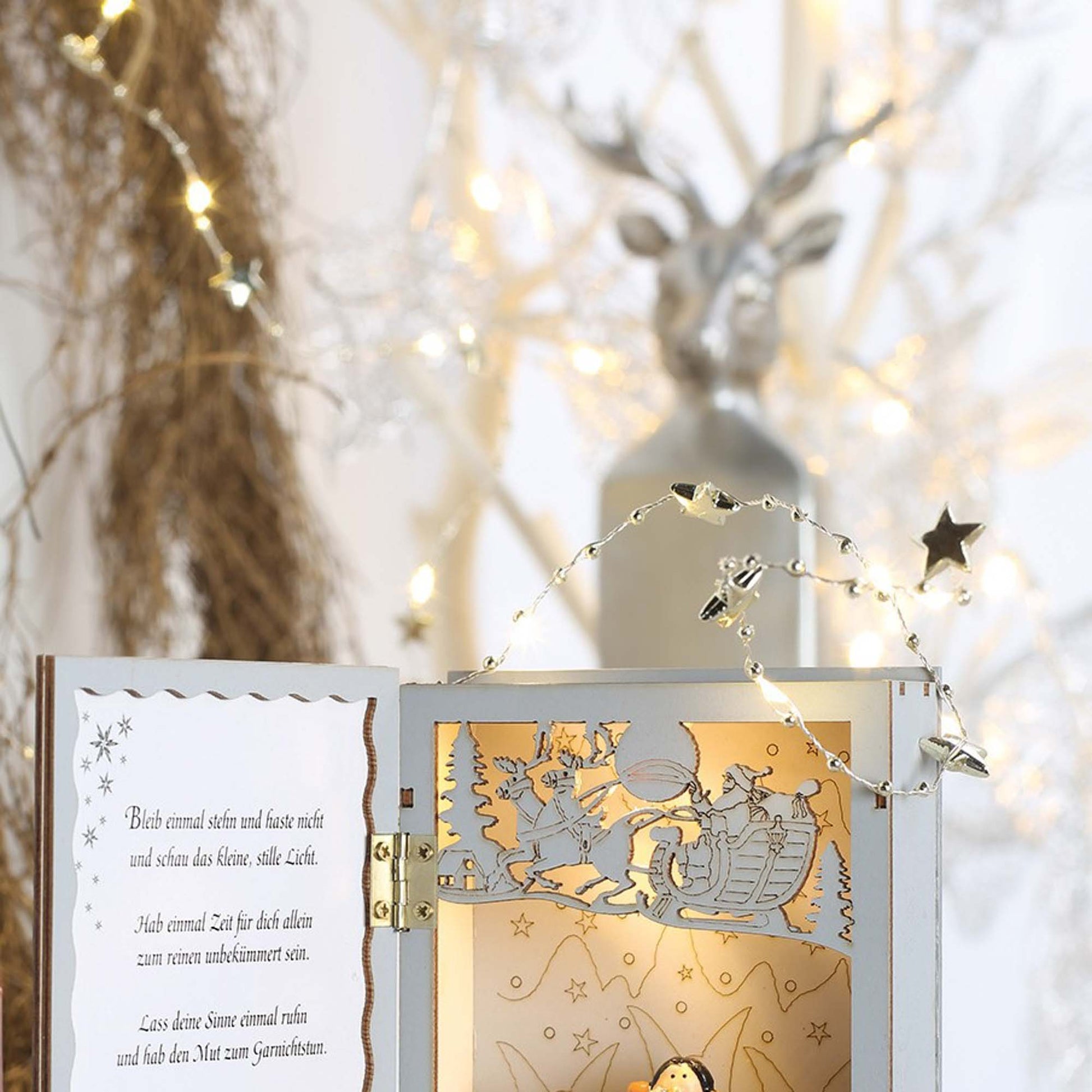 Diese LED-Lichterkette ist ein echter Eye-Catcher: Sie vereint zeitlose Motive mit modernster LED-Technologie. Die 20 langlebigen warm-weißen LEDs verströmen ein sehr angenehmes gelbes Licht und bringen die Tauperlen zum Funkeln. Durch die Stromversorgung per Batteriefach lässt sich die Kette quasi überall im Innenraum anbringen - Wohlfühlatmosphäre garantiert. Lassen Sie Ihrer Phantasie freien Lauf!