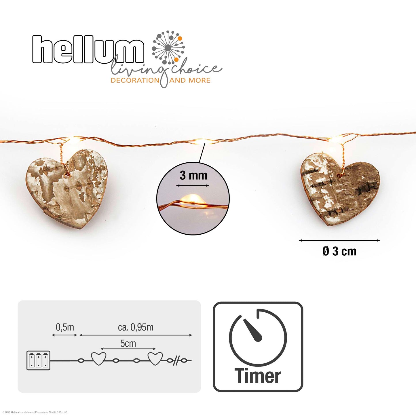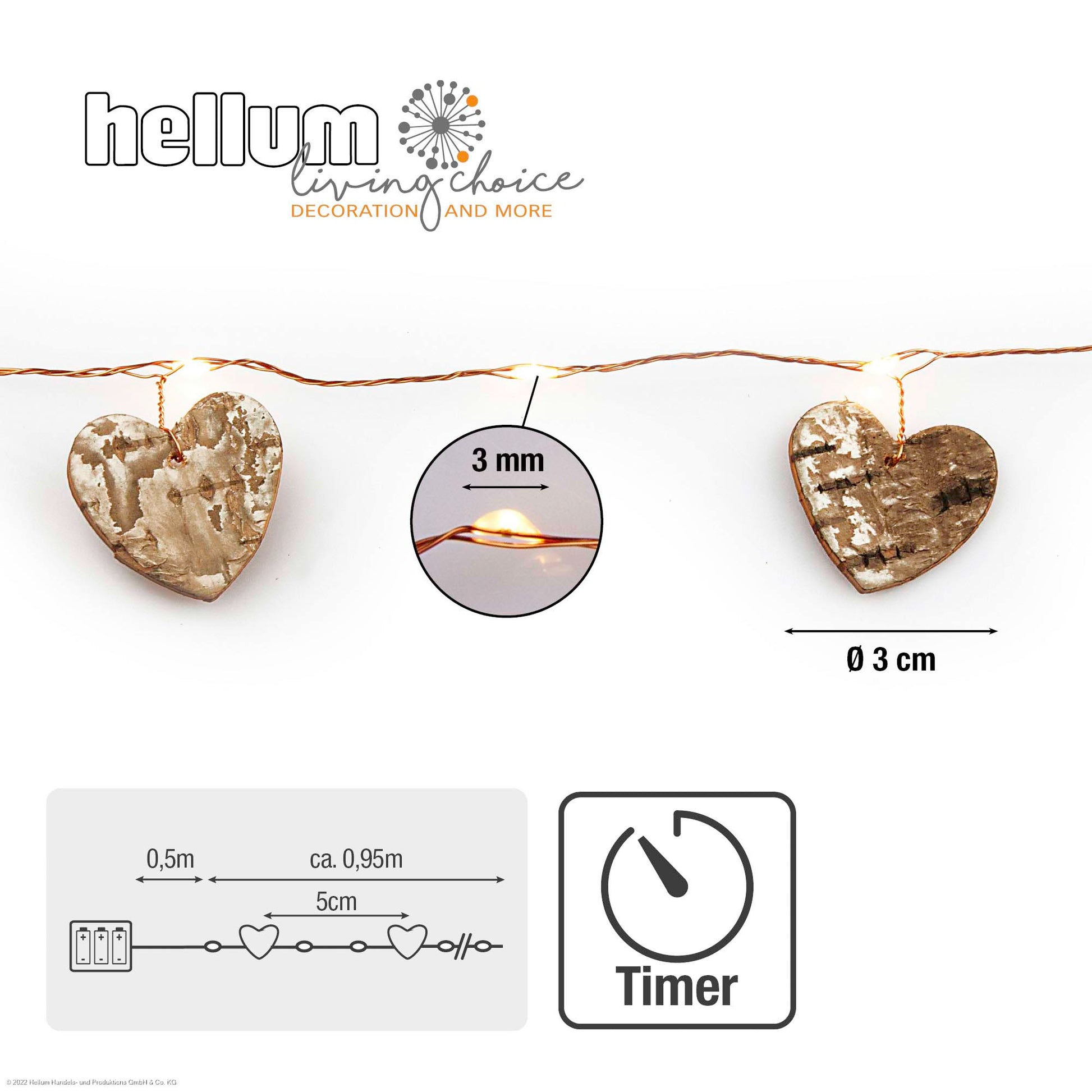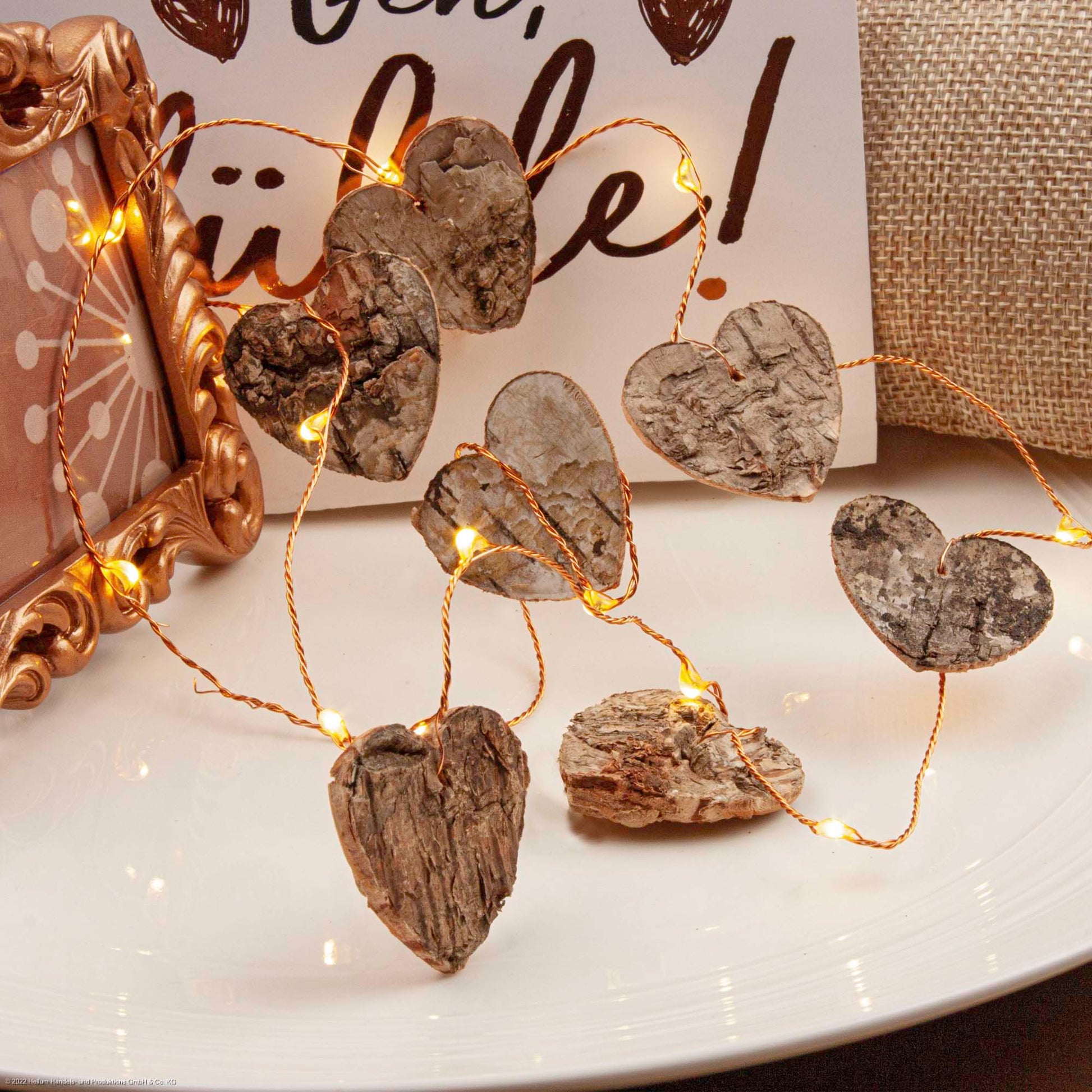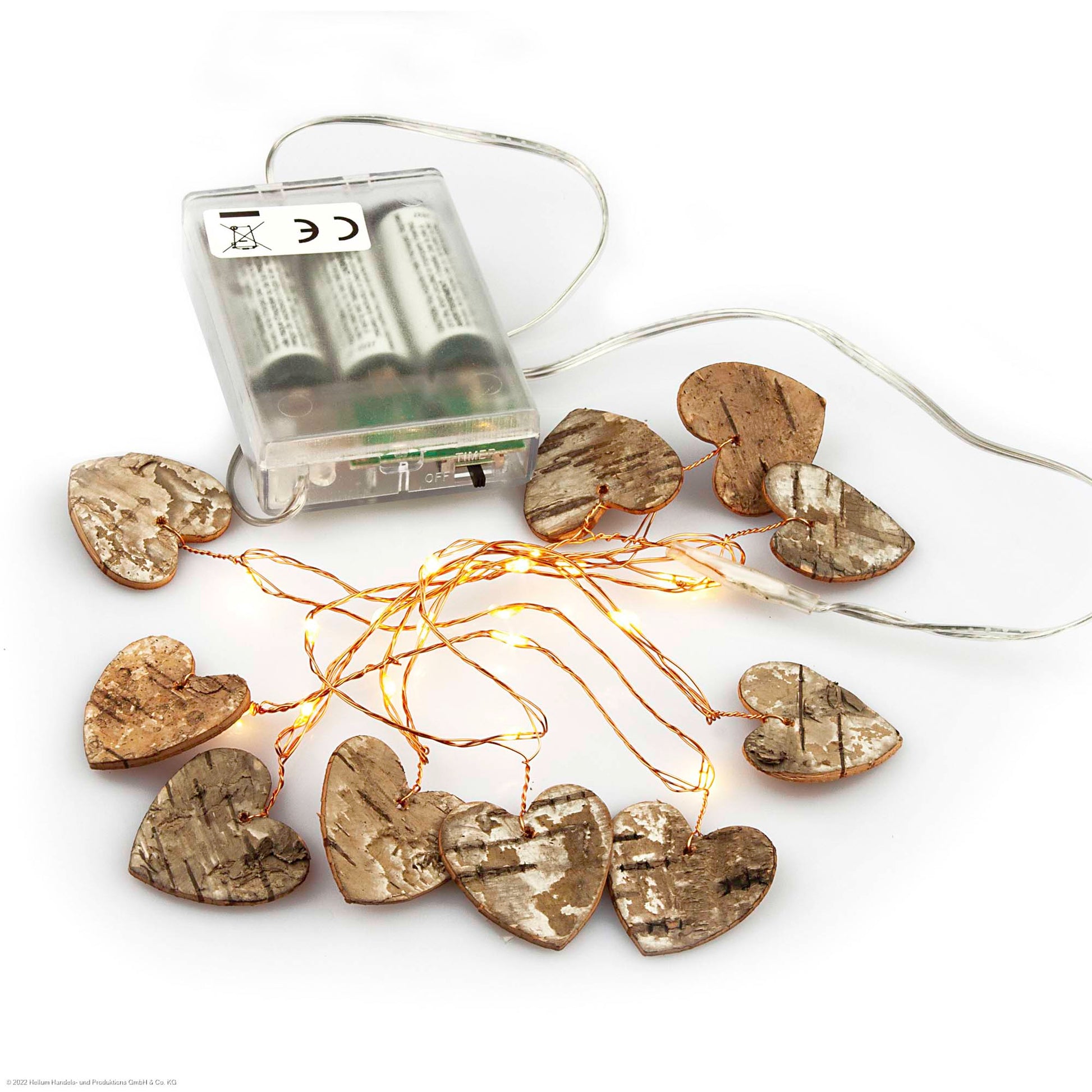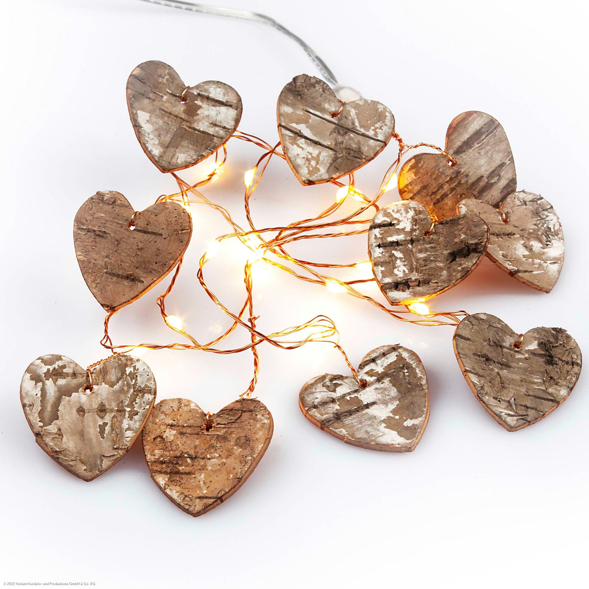 20-tlg. LED-Lichterkette mit Herzen aus Birkenrinde, batteriebetrieben