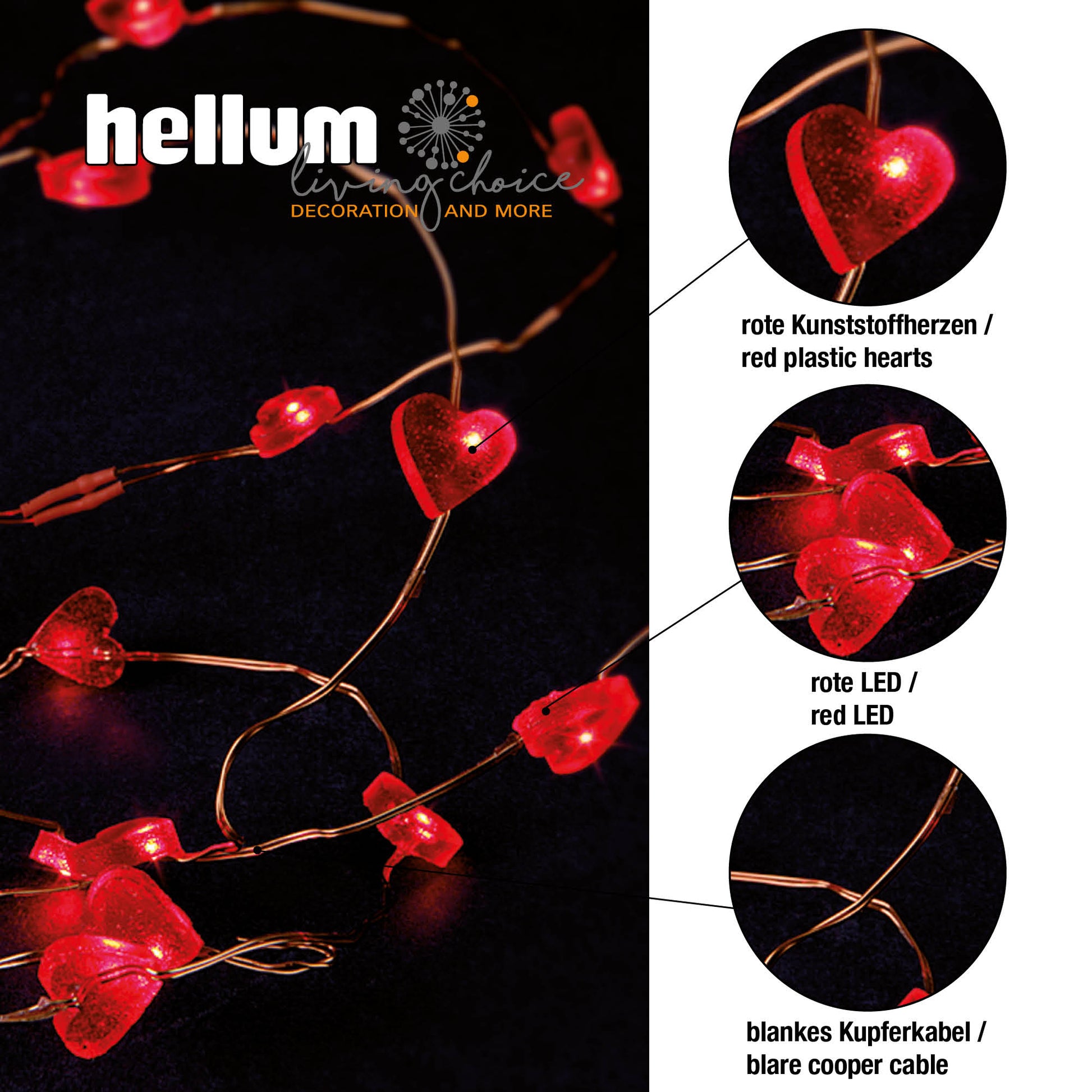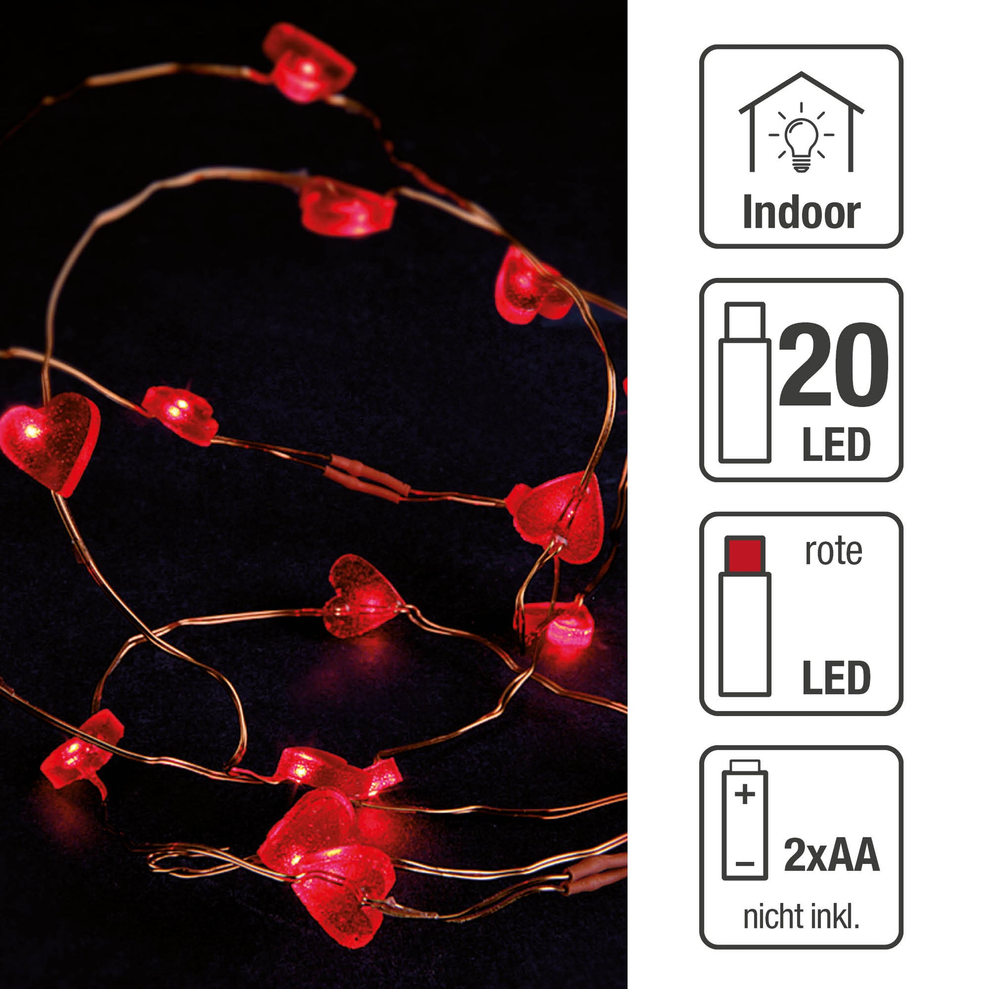 20-tlg. LED-Lichterketten "Herzen", rot, batteriebetrieben, für innen