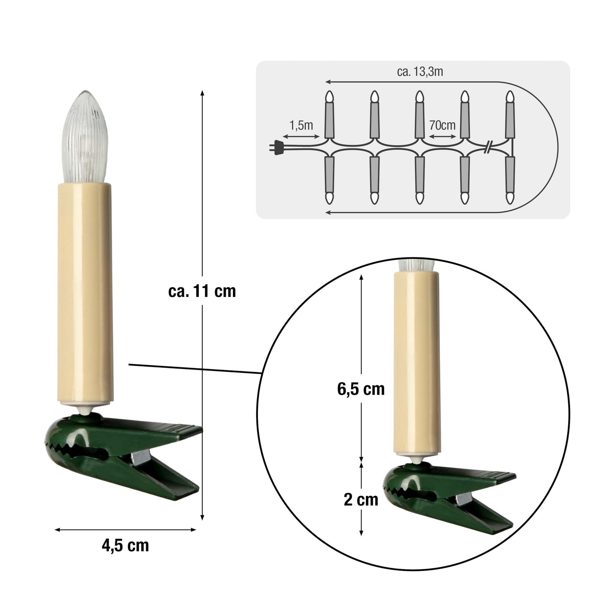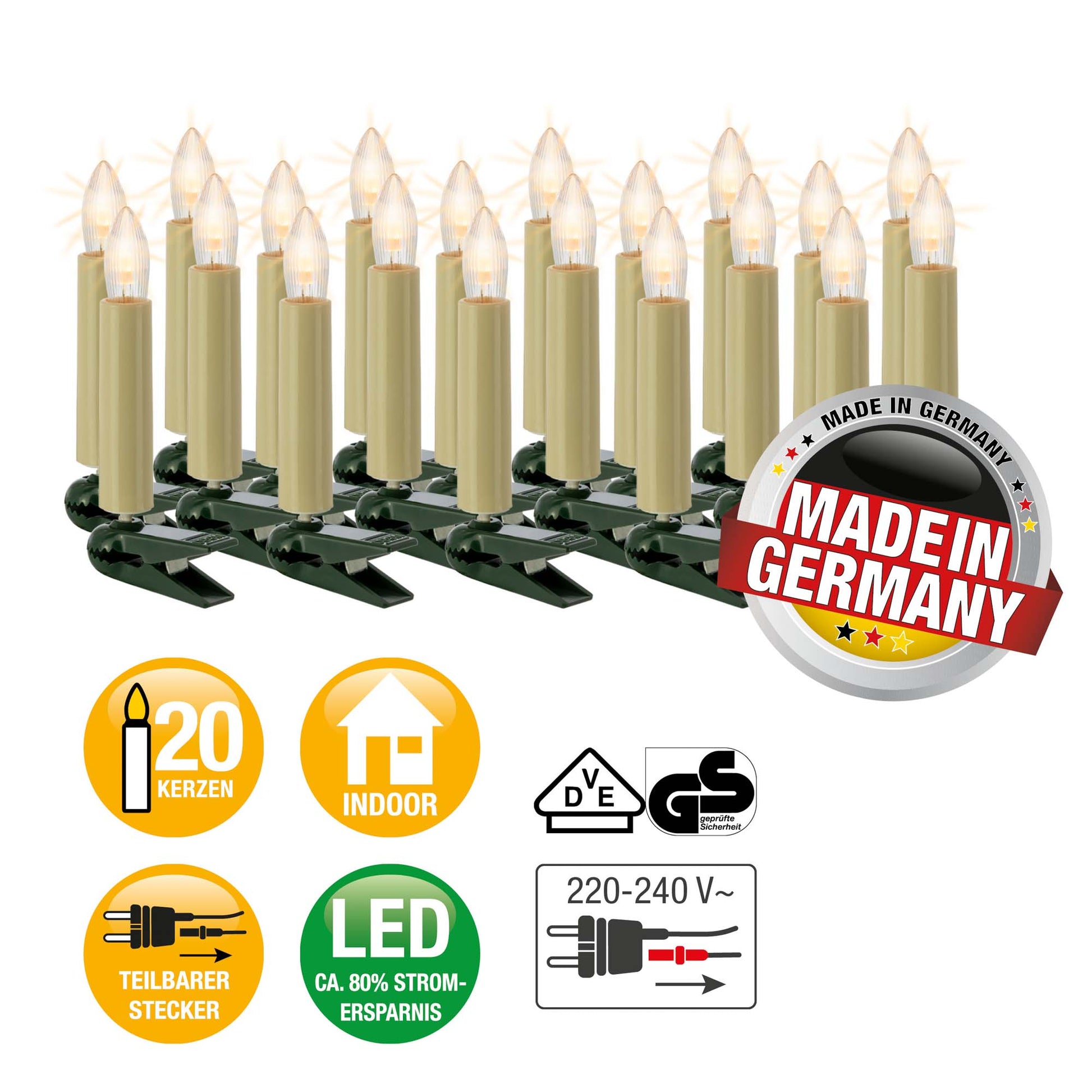 LED-Lichterkette elfenbein, 20 LEDs ww, teilbarer Stecker