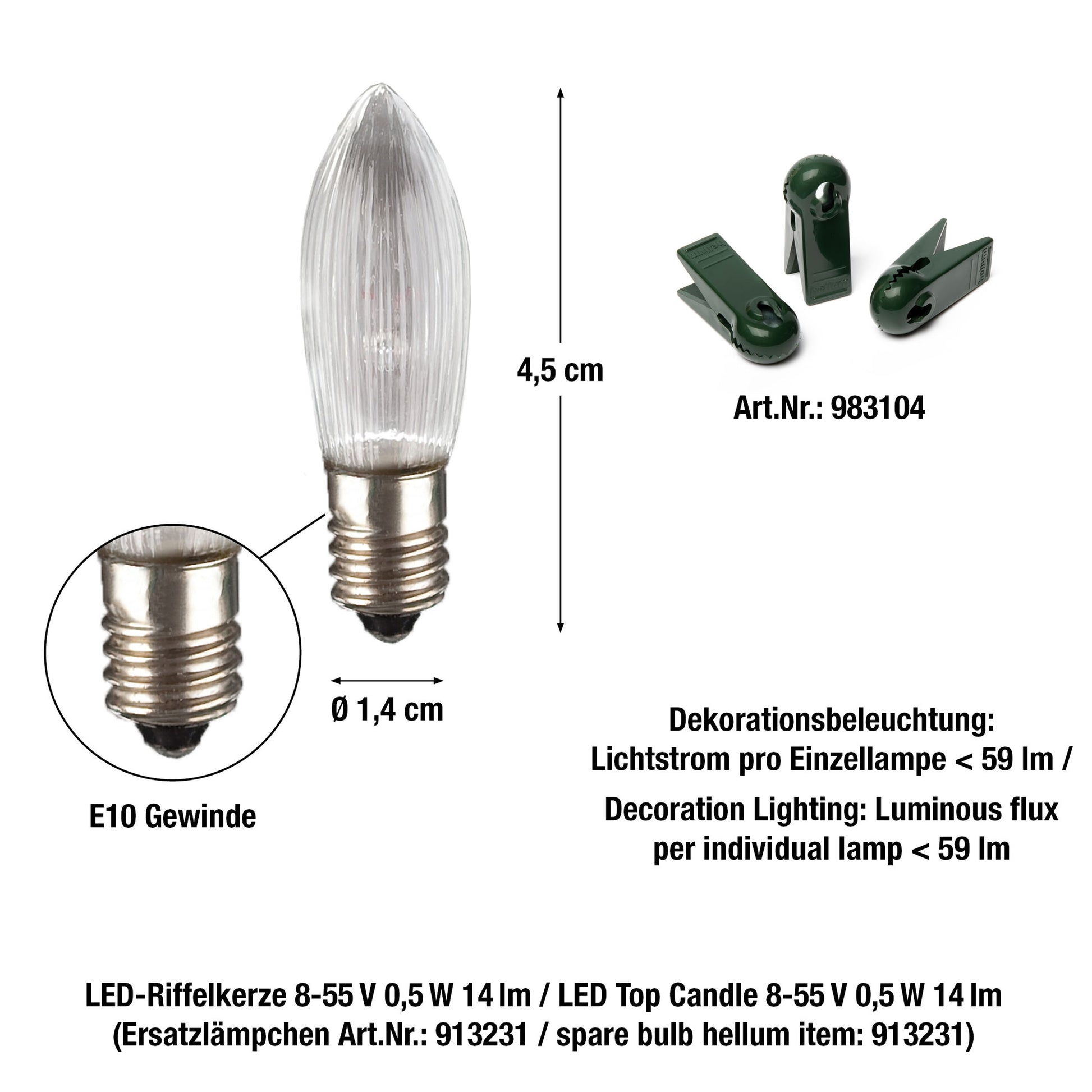 ENERGIESPAREND - Nur 0,1 Watt Stromverbrauch pro Riffelkerze dank moderner LED-Technologie.