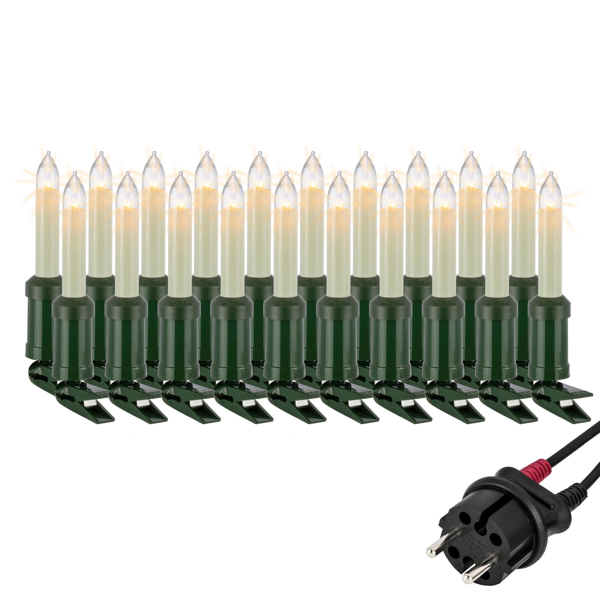 20-tlg. LED-Schaftkerzenkette, warm-weiß, für außen, teilb. Stecker
