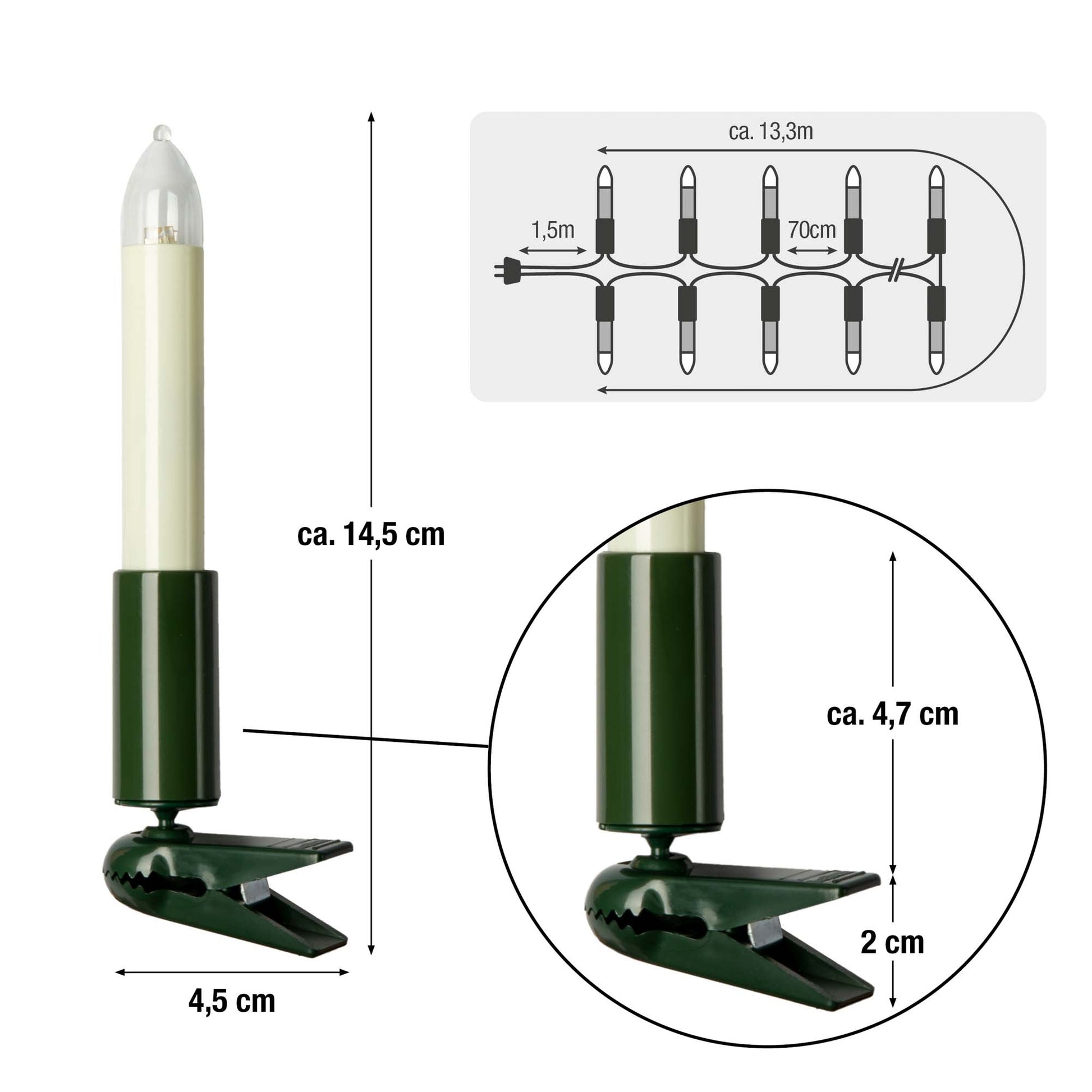 LED Schaftkerzenkette, 20 LEDs ww, für innen, teilbarer Stecker