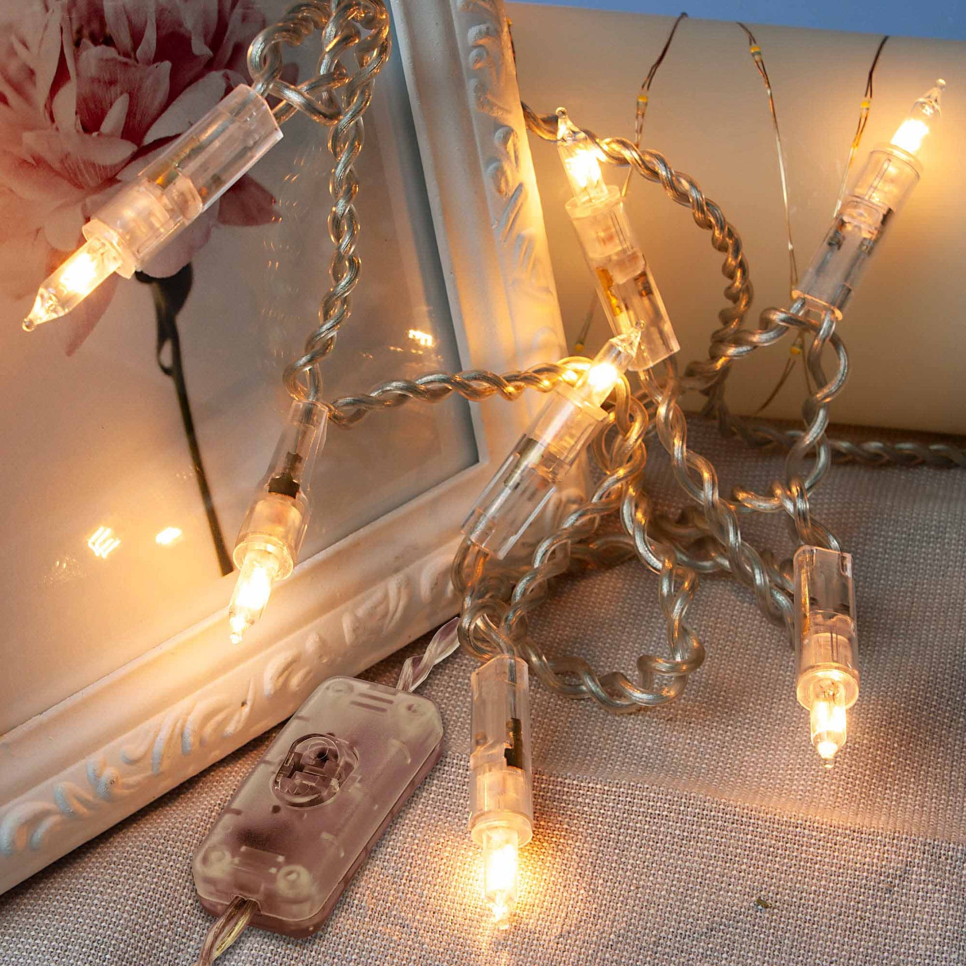 <Langlebig> Lichterkette mit 20 hochwertigen Pisellokerzen, inkl. Ersatzlämpchen, nachhaltig da keine Batterien benötigt werden.