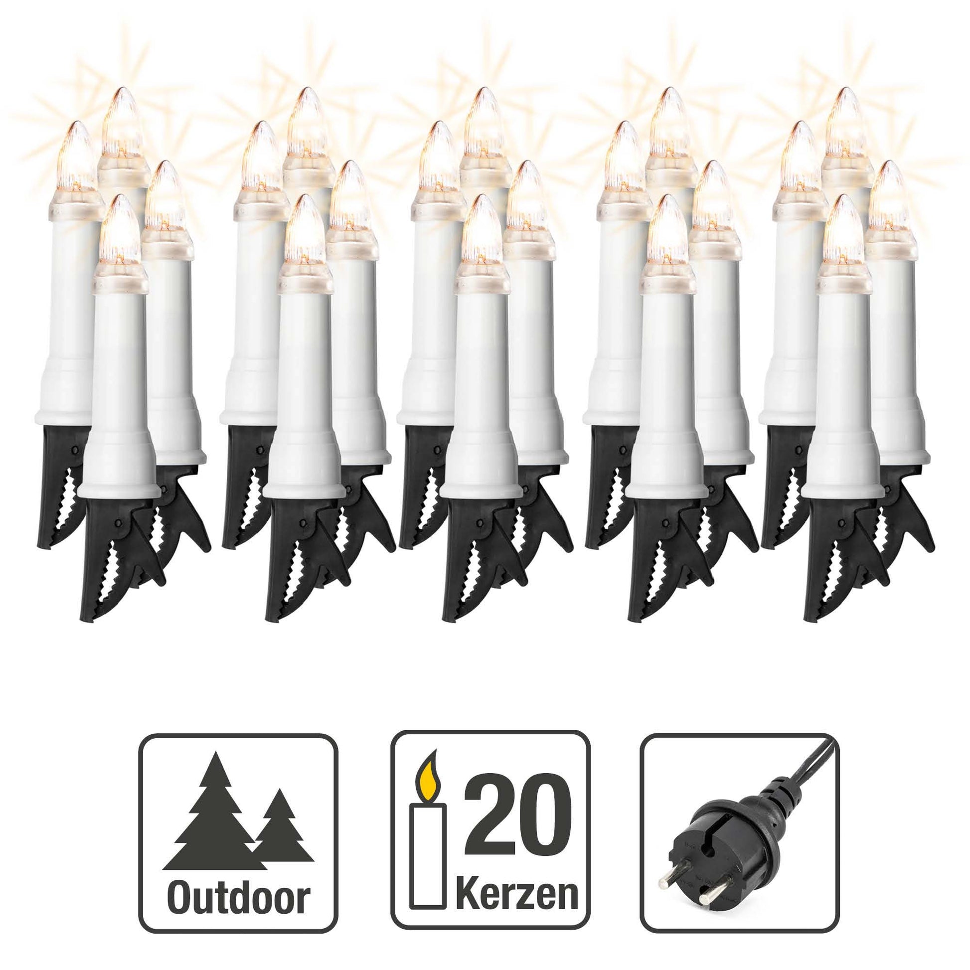 20-tlg. Riffelkerzenkette, klare Lampen, mit EU-Stecker, für außen