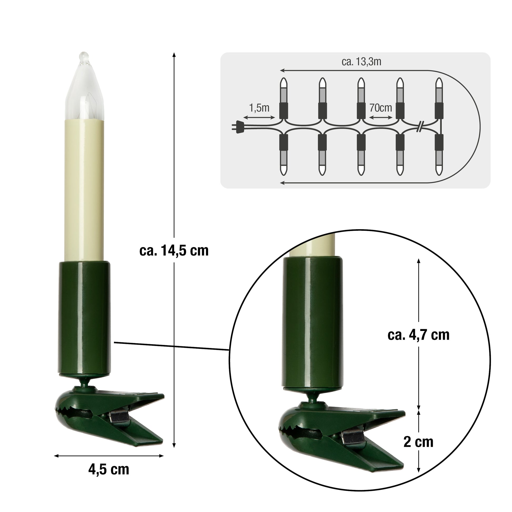 20-tlg. Schaftkerzenkette, klare Lampen, für innen, teilb. Stecker