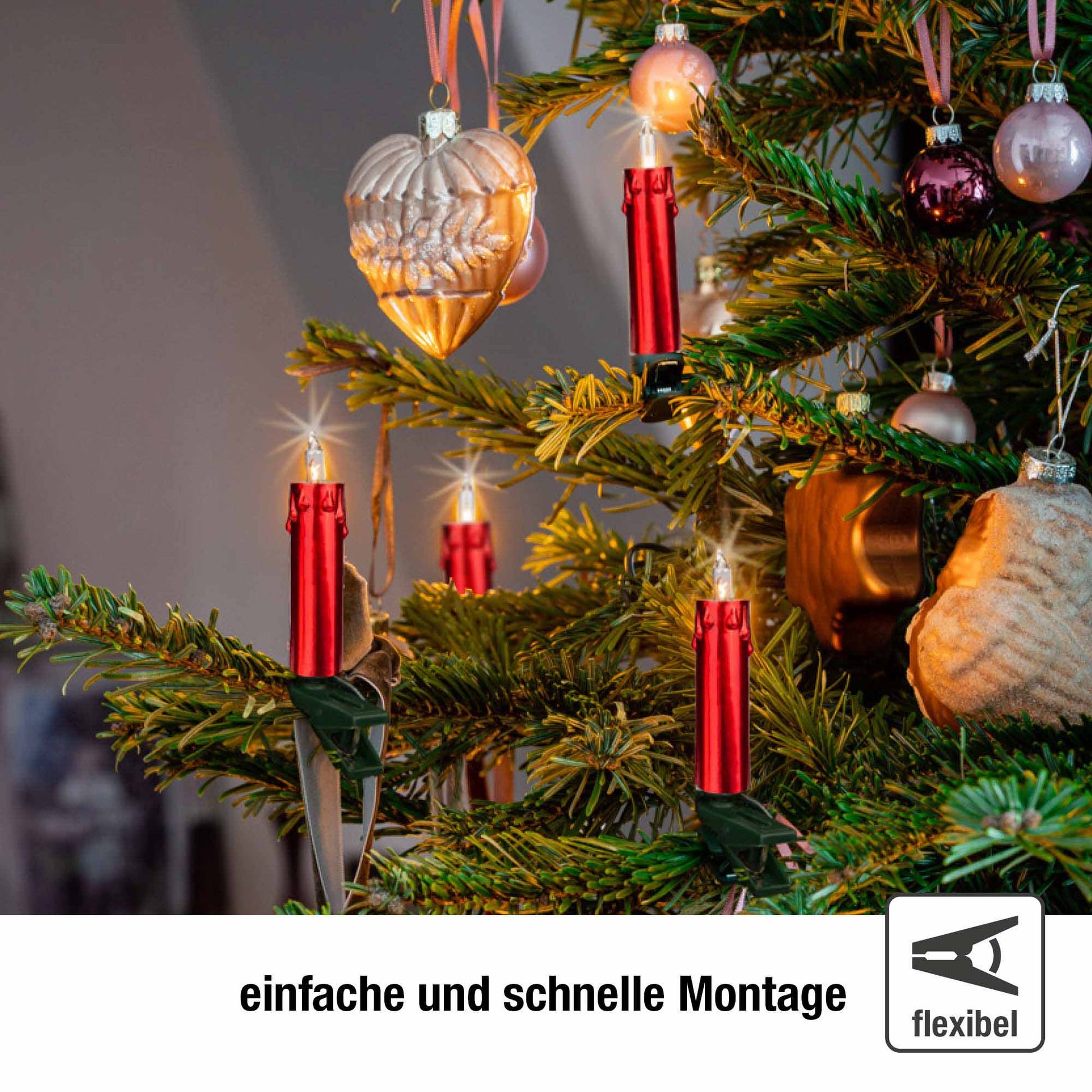 Diese Minischaftkerzenkette vereint wie keine andere Funktionalität mit Optik: 20 helle Minischaftkerzen treffen auf zeitlos-edle rote Farbe. So wird jedes Weihnachtsfest zur Augenweide. Sie suchen nach der Kette, die Ihrem Weihnachtsfest das gewisse Etwas verleiht? - Mit dieser Kette treffen Sie definitiv ins Schwarze!