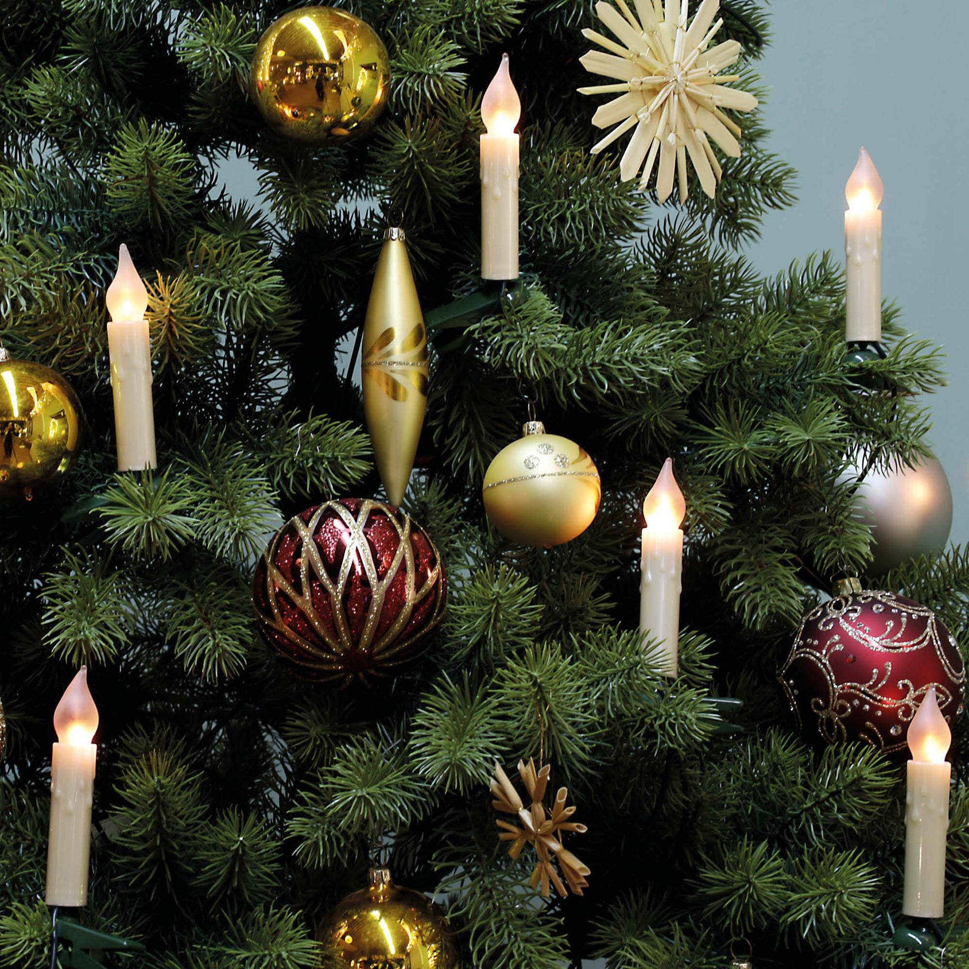 Lichterkette Weihnachtsbaum LED Filament mit Flammeneffekt innen 30 teilig, Made in Germany, Riffelkerzen, mit Wachstropfen, perlelfenbein