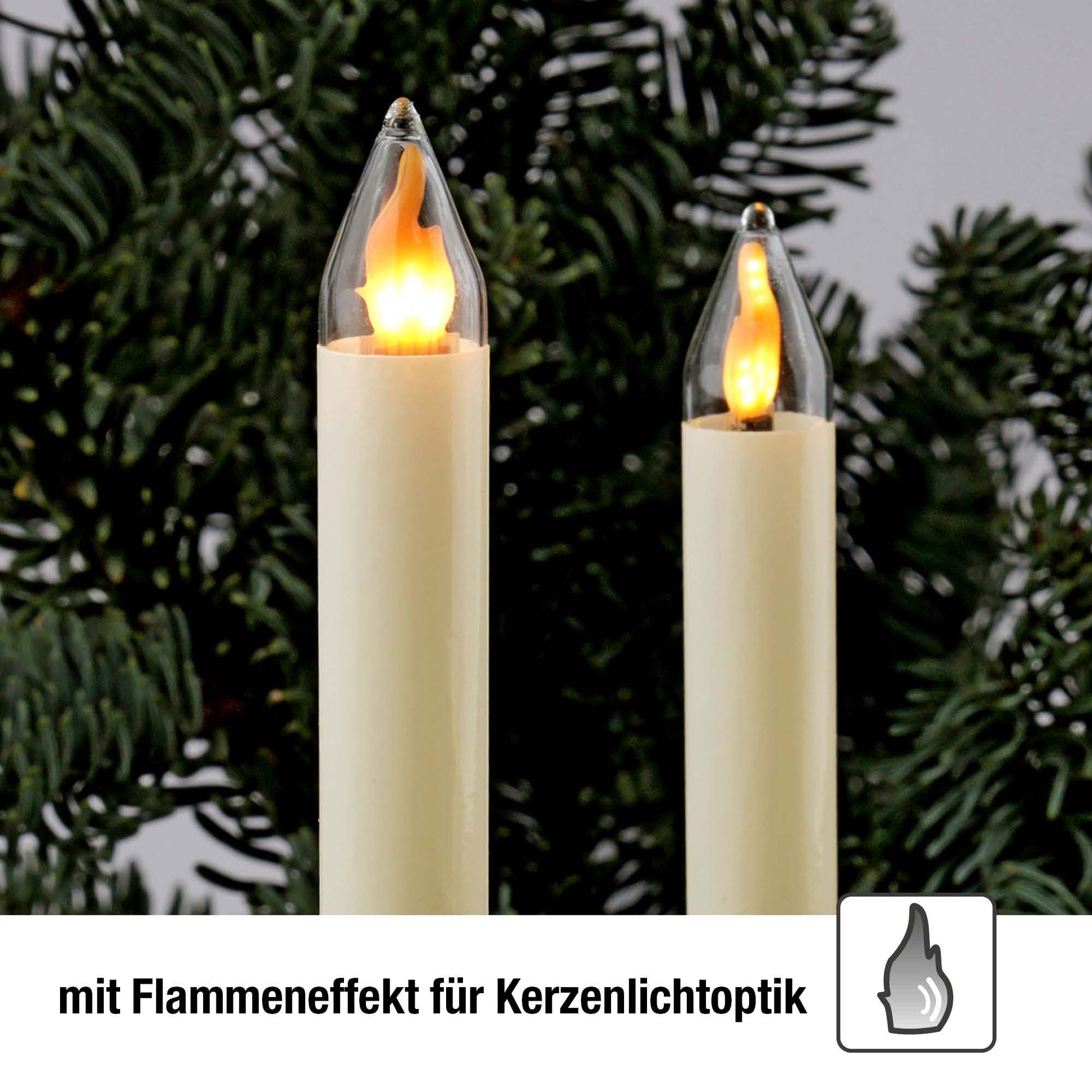 Lichterkette Weihnachtsbaum LED Filament mit Flammeneffekt, innen 30 teilig, Made in Germany, Schaftkerzen