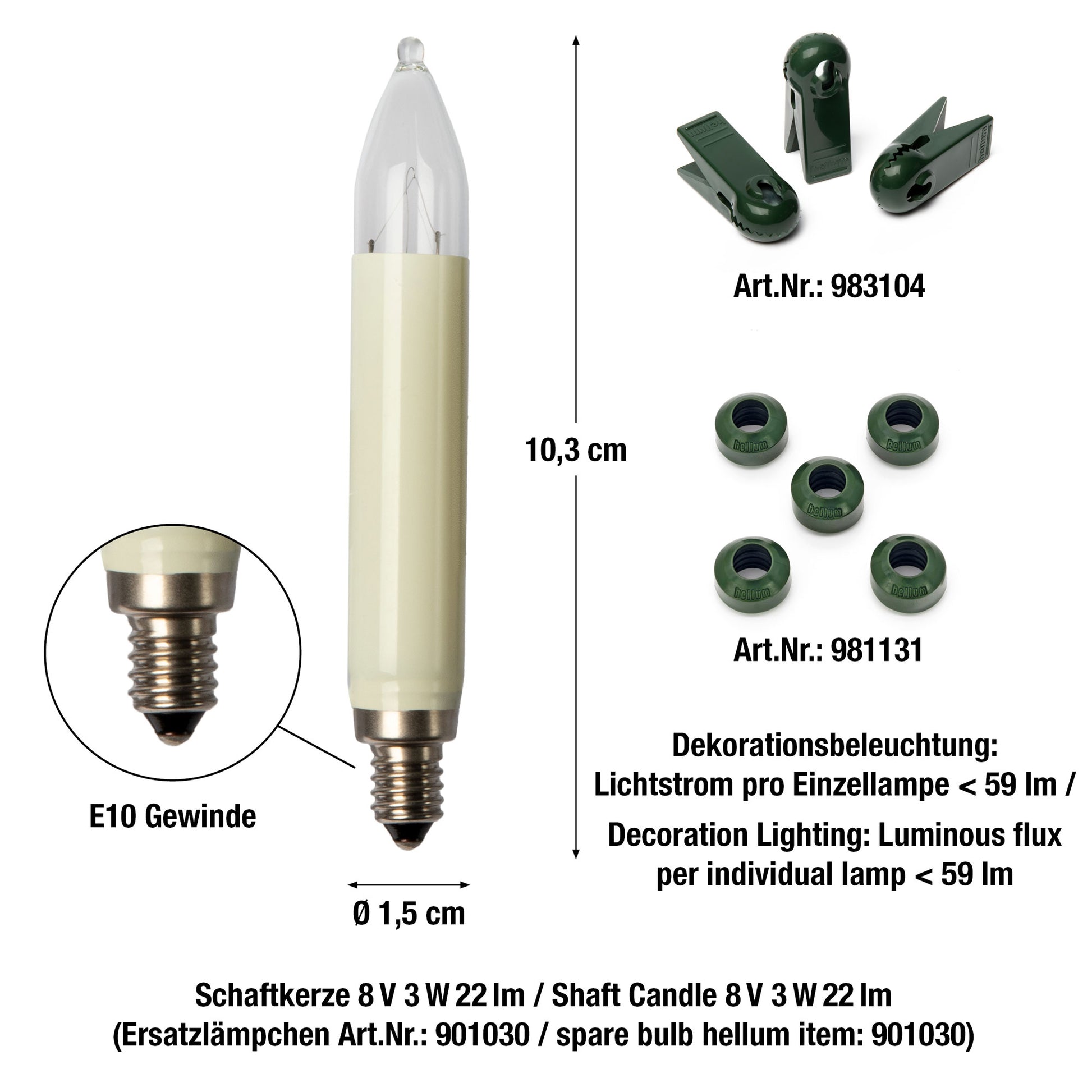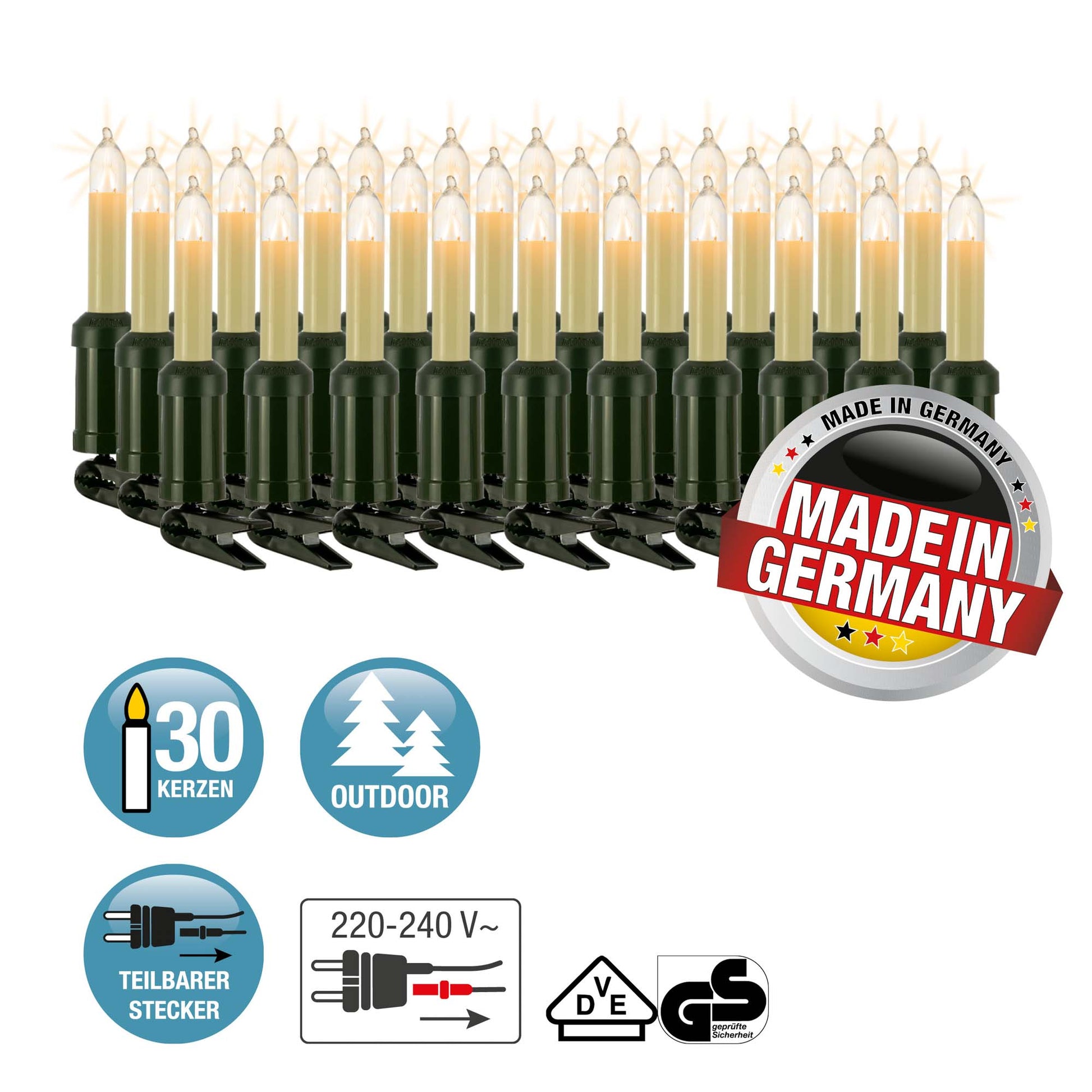 30-tlg. Schaftkerzenkette, klare Lampen, für außen, teilb. Stecker_846003 mit3x Ersatzkerzen