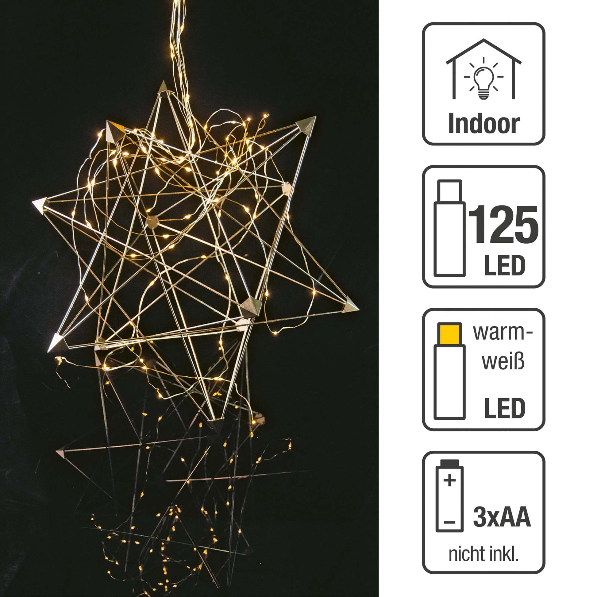 3 D Metall Stern, DIY DIA 54cm, mit LED-Lichterkette, 100 LEDs ww, mit Timer, batteriebetrieben