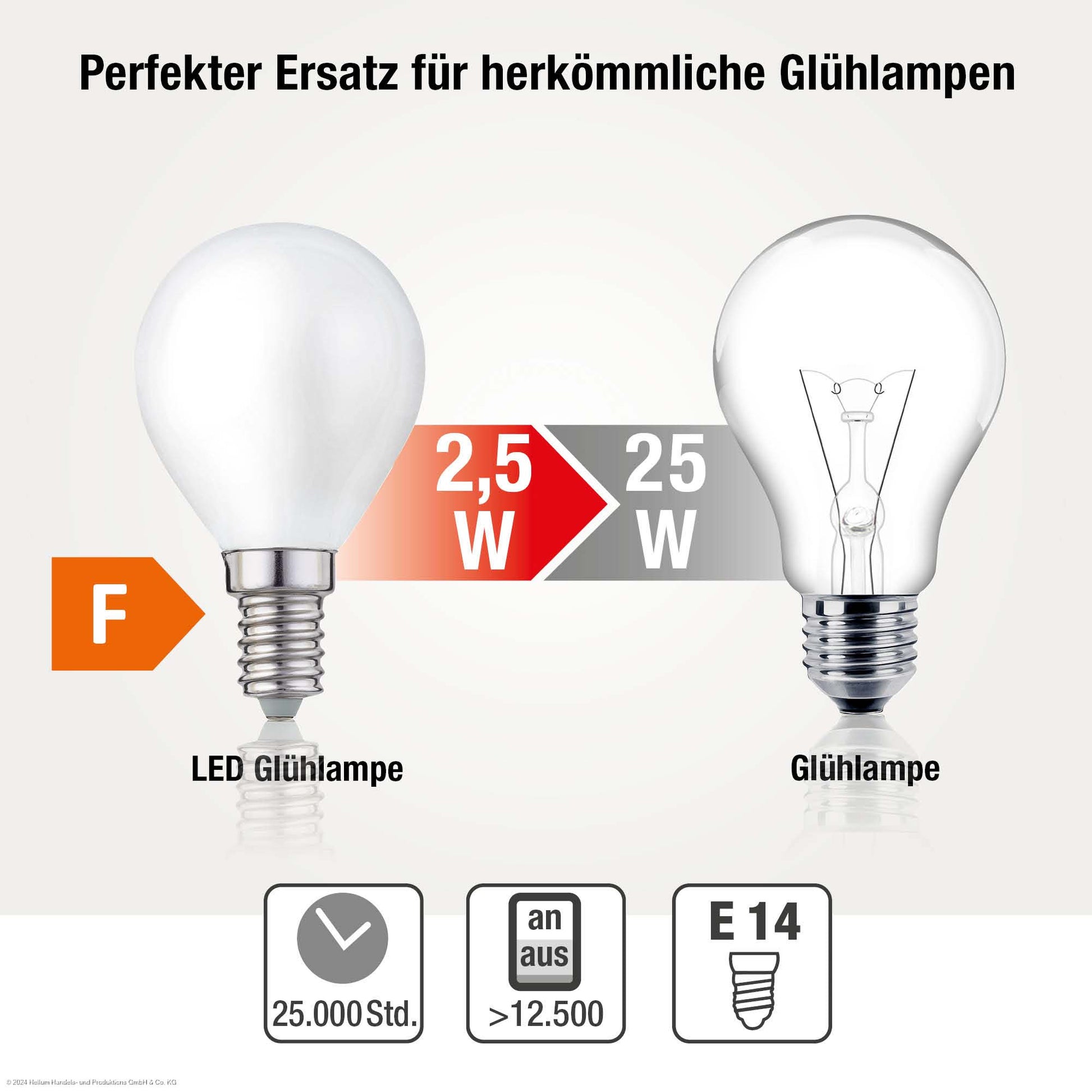 Bis zu 90% Energie sparen - dank moderner LED Technologie, 2,5 Watt bei 200 Lumen