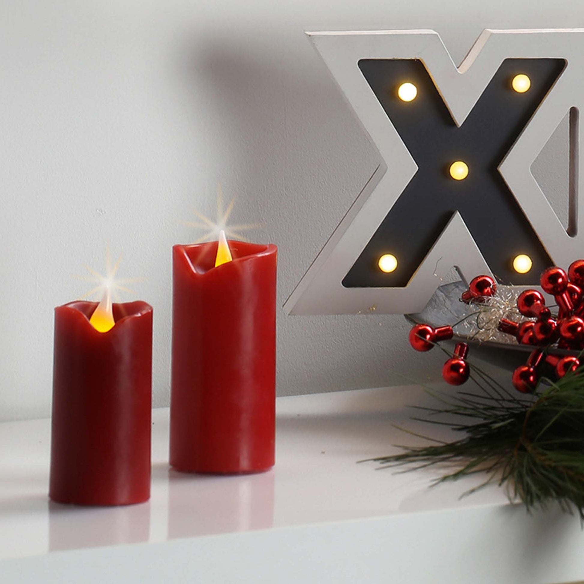 4 Stück LED-Wachskerze, 9,5 cm hoch, 5,5 cm Ø, rot, gelbe LED, batteriebetrieben_572131_4er