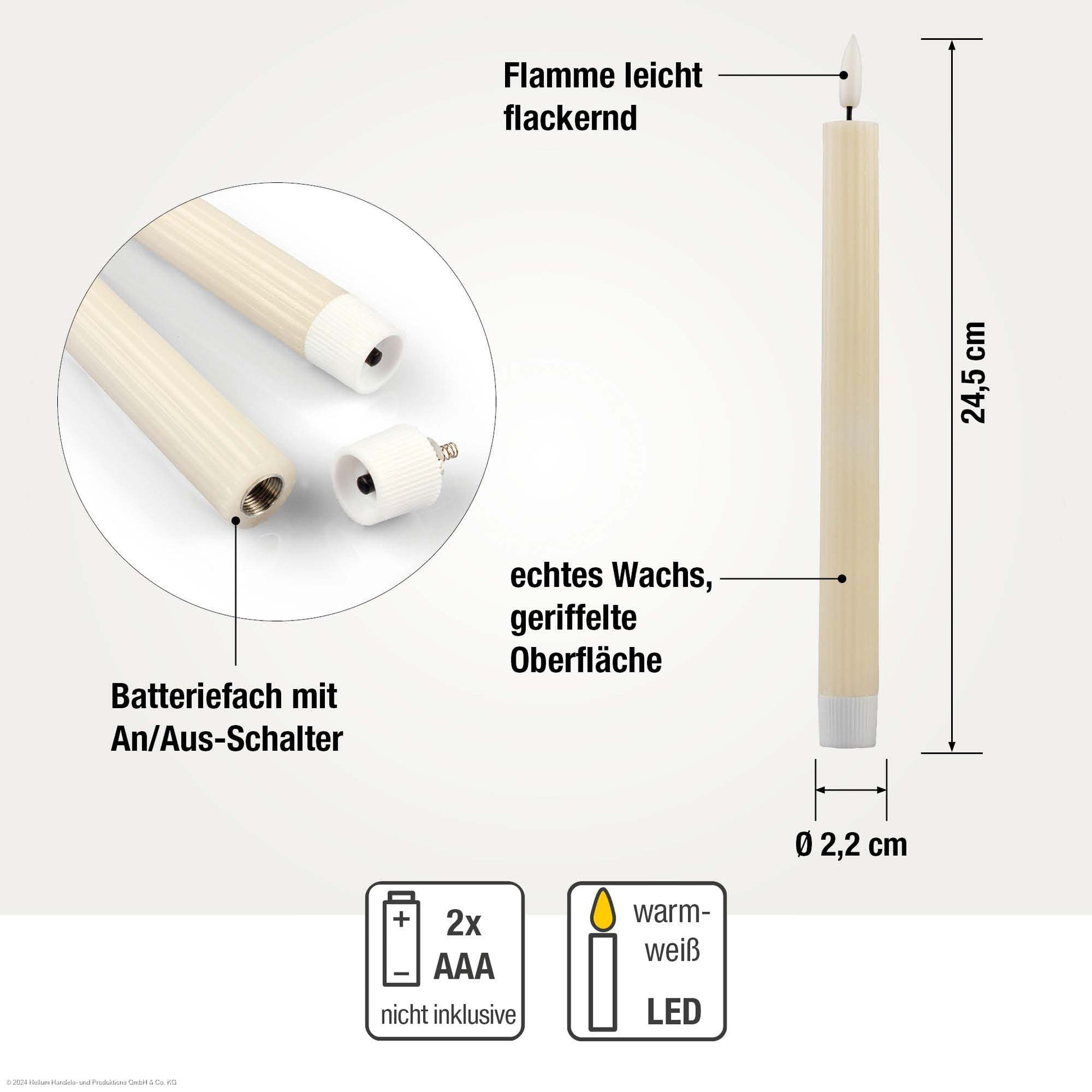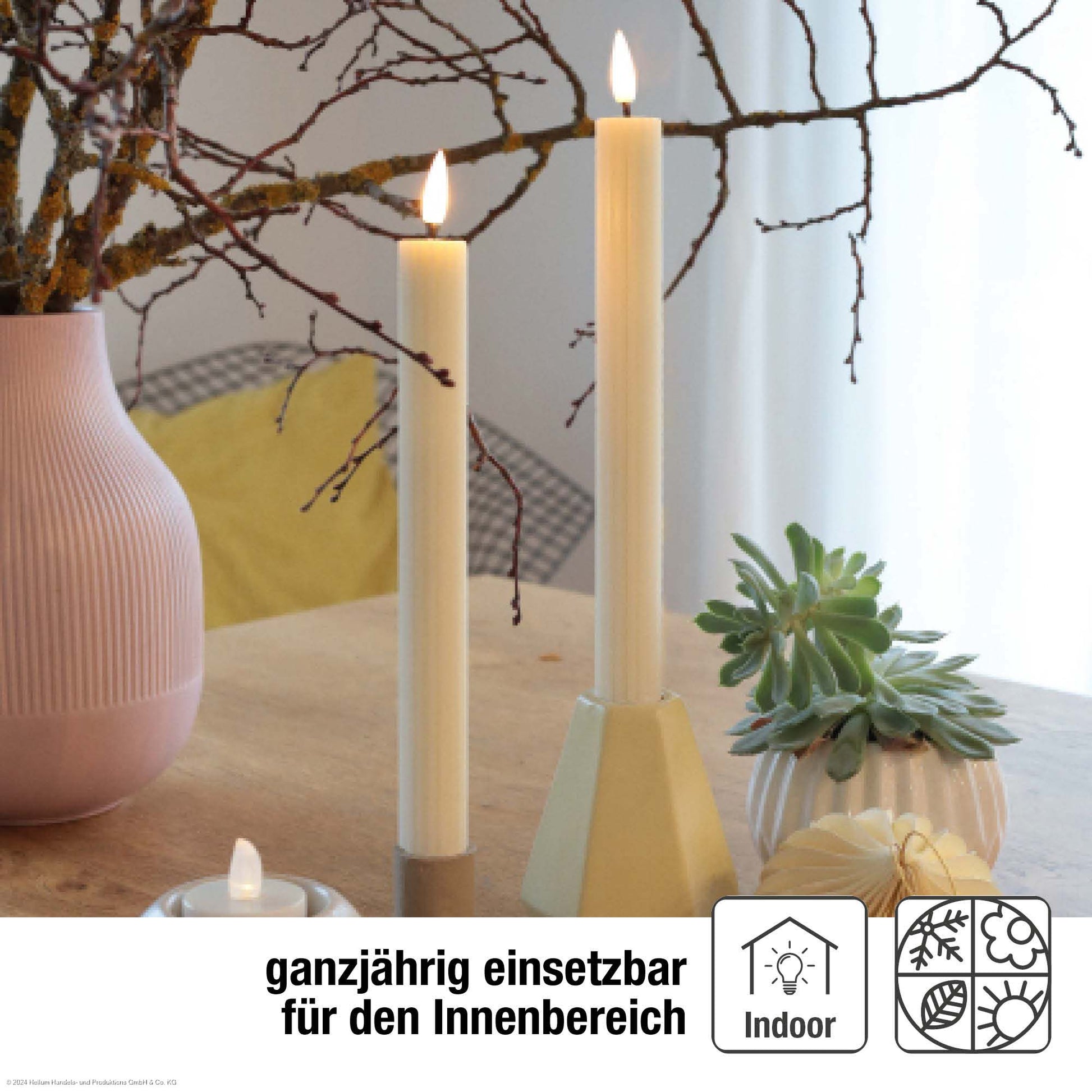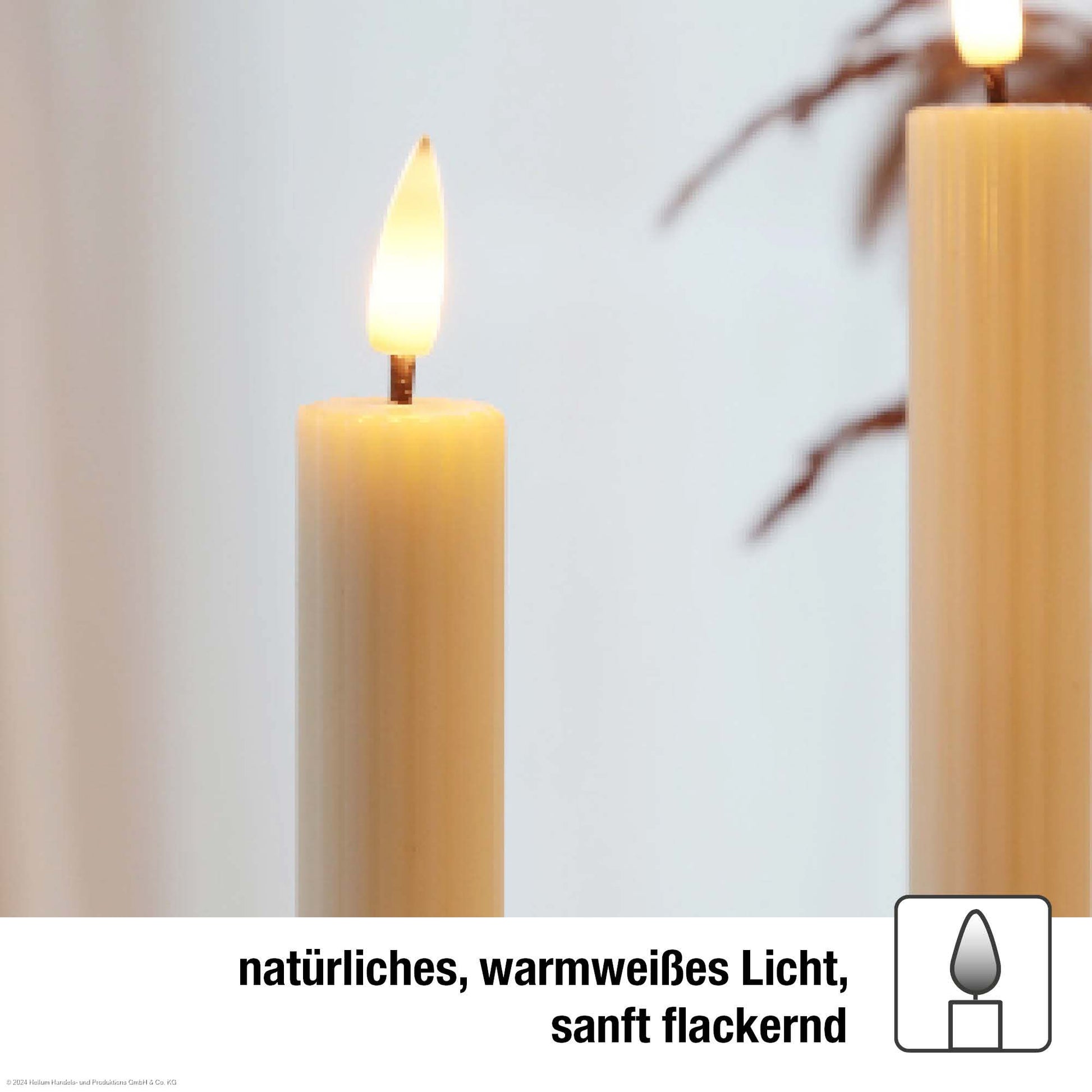 4er-Set LED-Tafelkerzen Echtwachs crèmefarben mit Flammenoptik 2AAA batteriebetrieben mit Fernbedienung