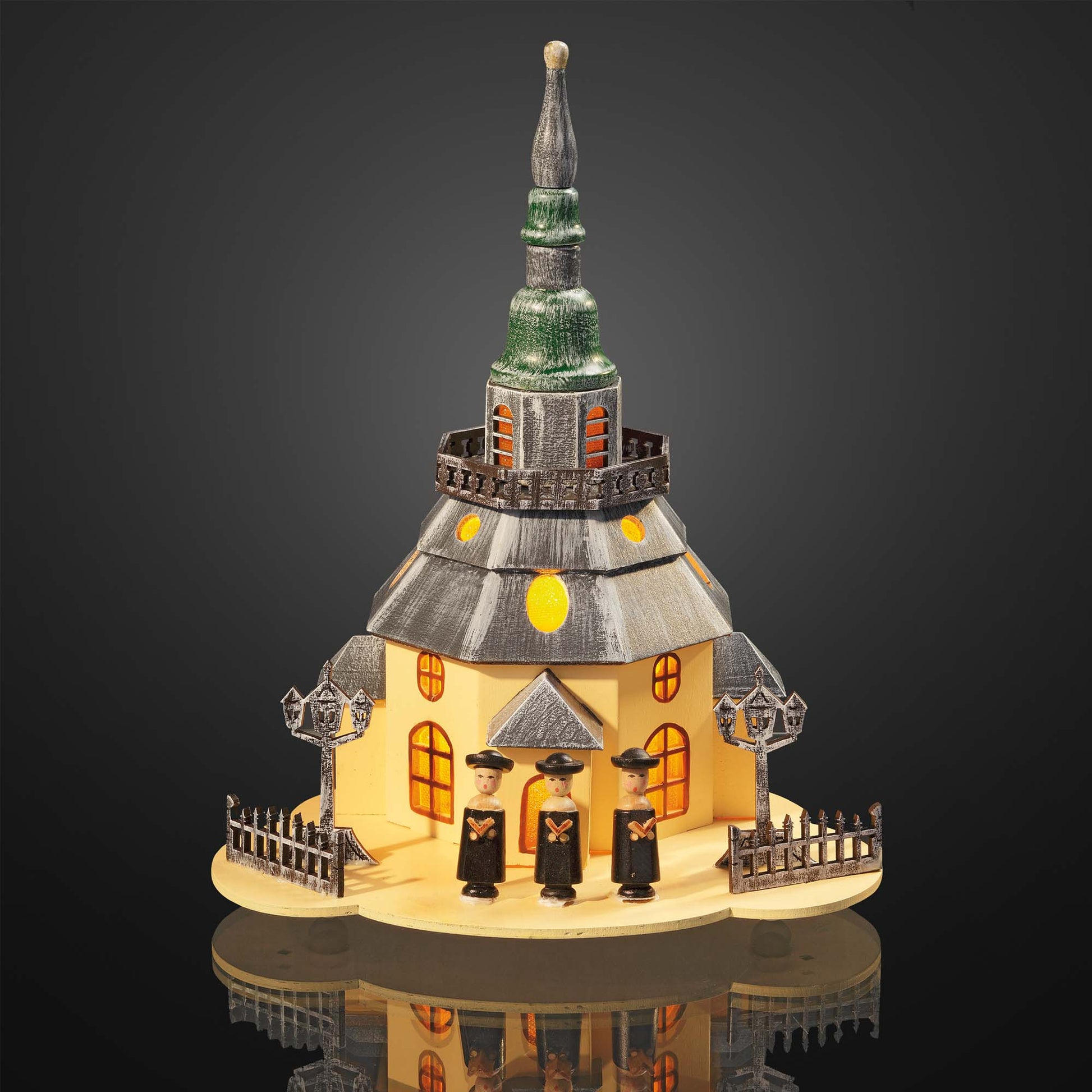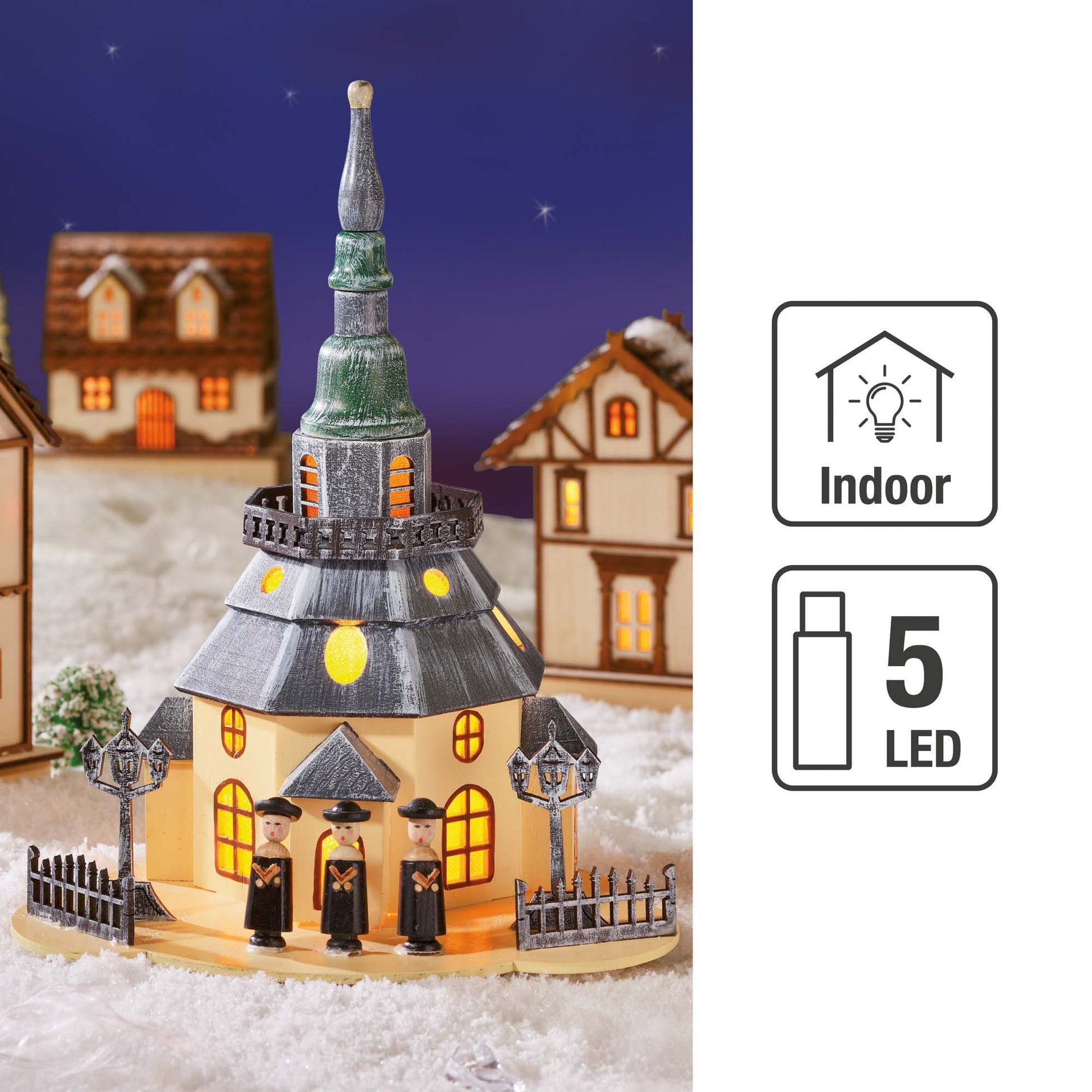 LED-Holzkirche m. Sängern, 5 LEDs ww, 21x20x29cm, Innen-Trafo