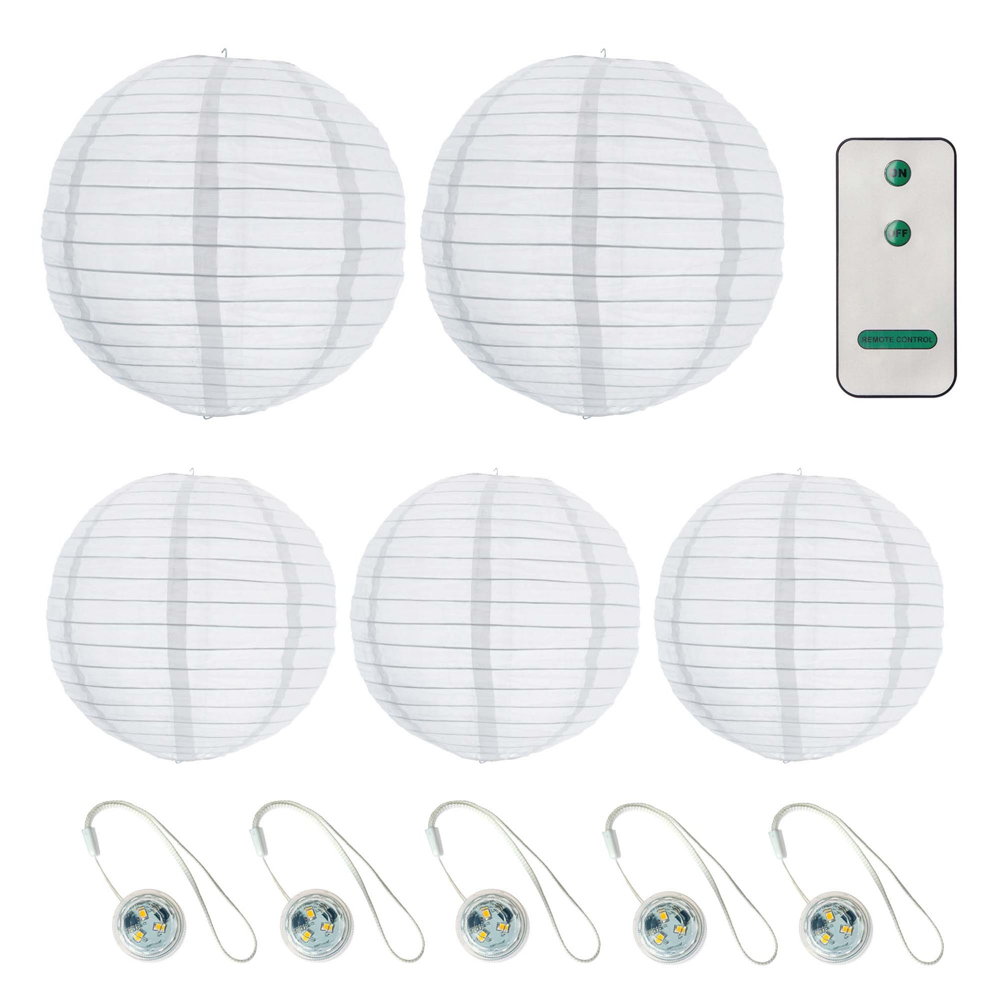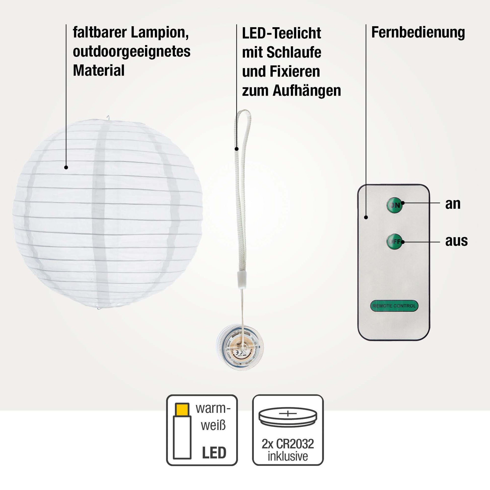 5er-Lampion-Set, warmweiß, 2x25/3x20cm