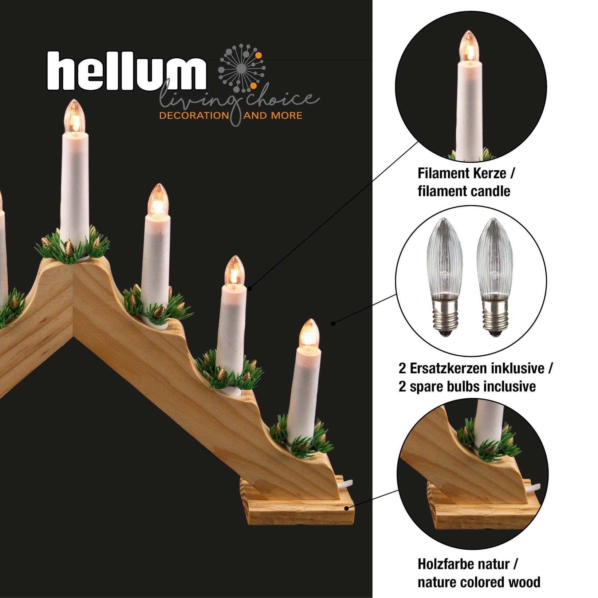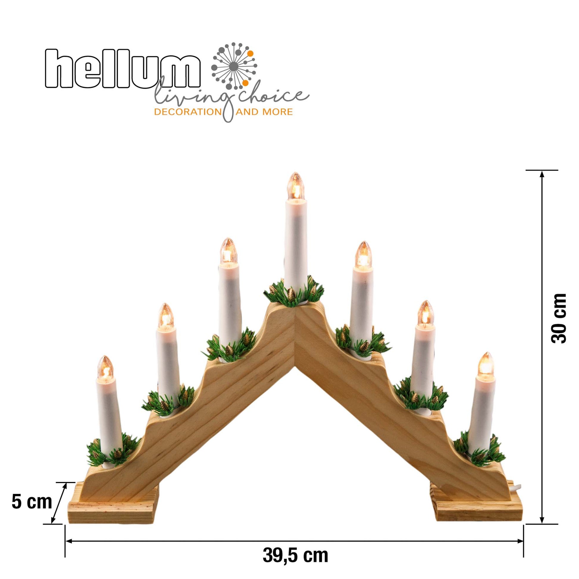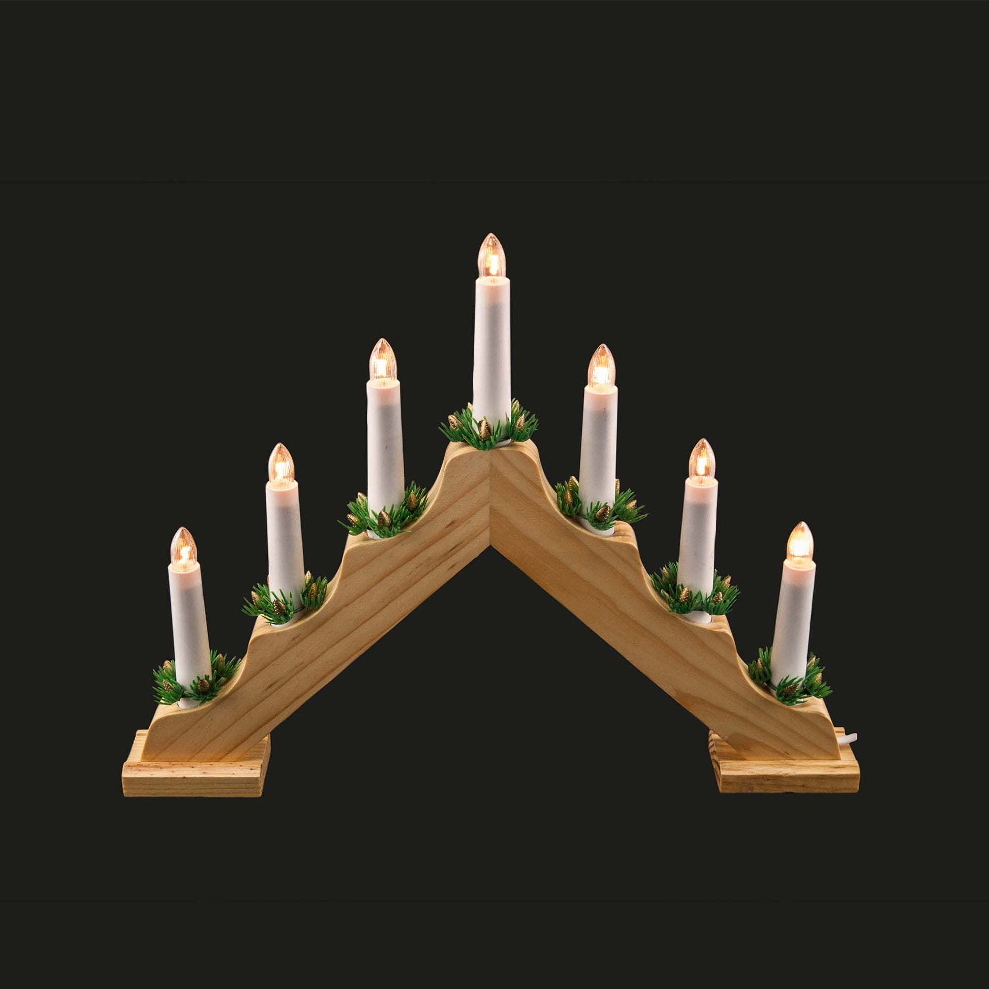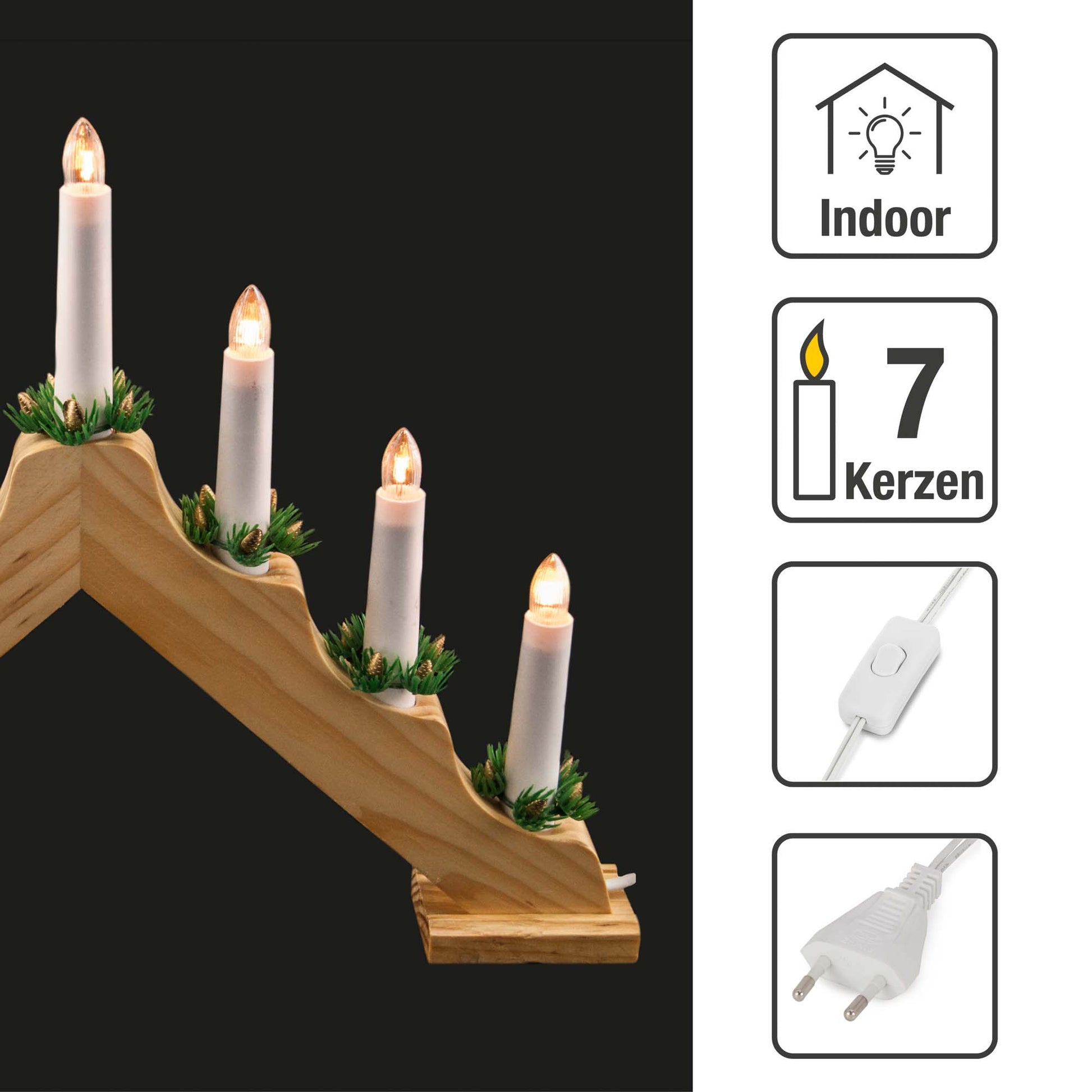 7-tlg. Holzleuchter, natur, 1,5m Zuleitung, Kabel weiß