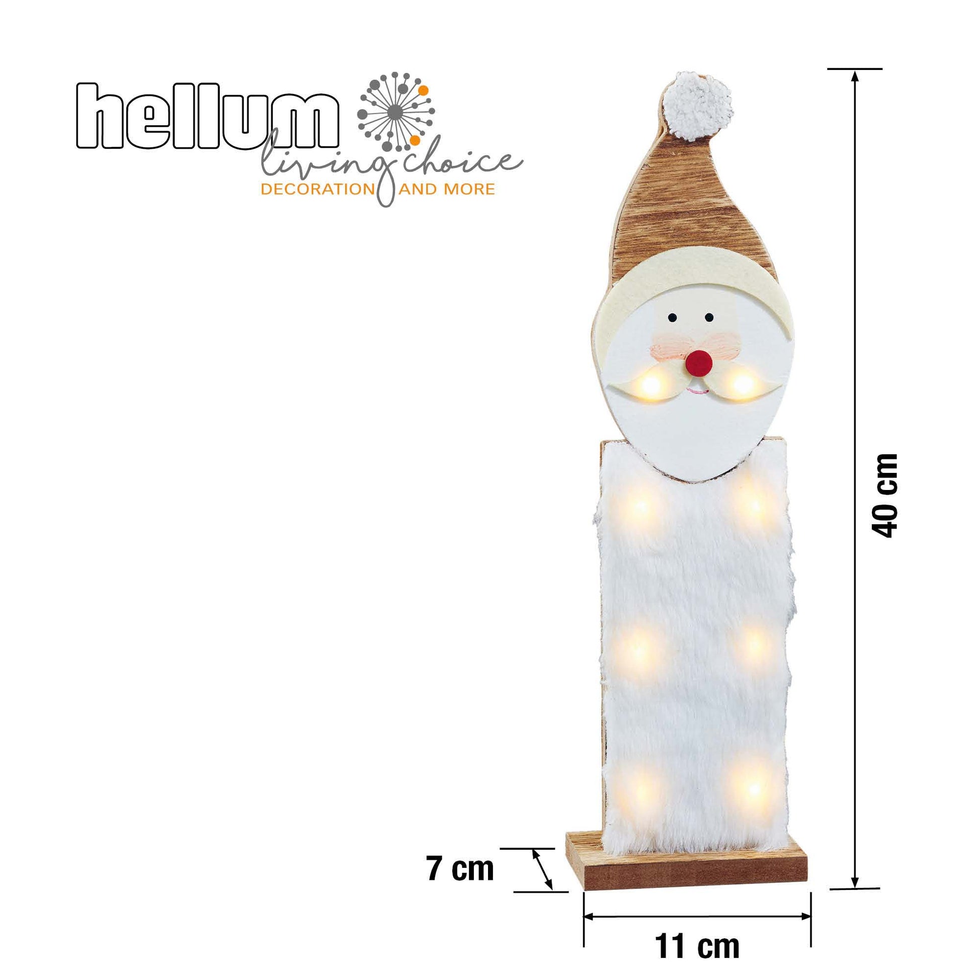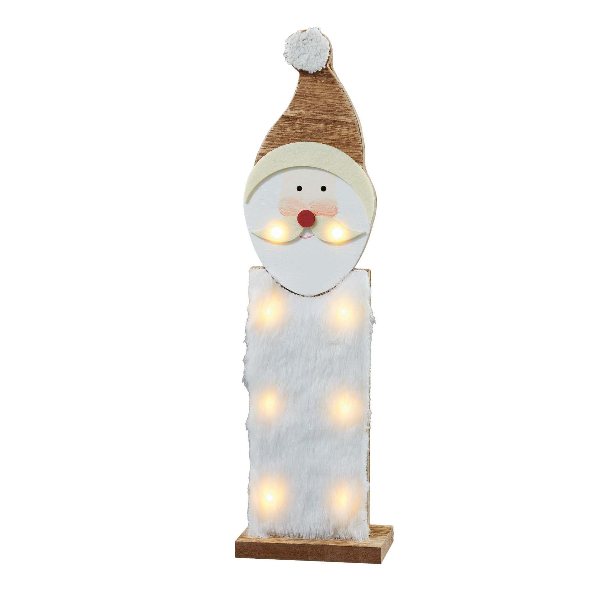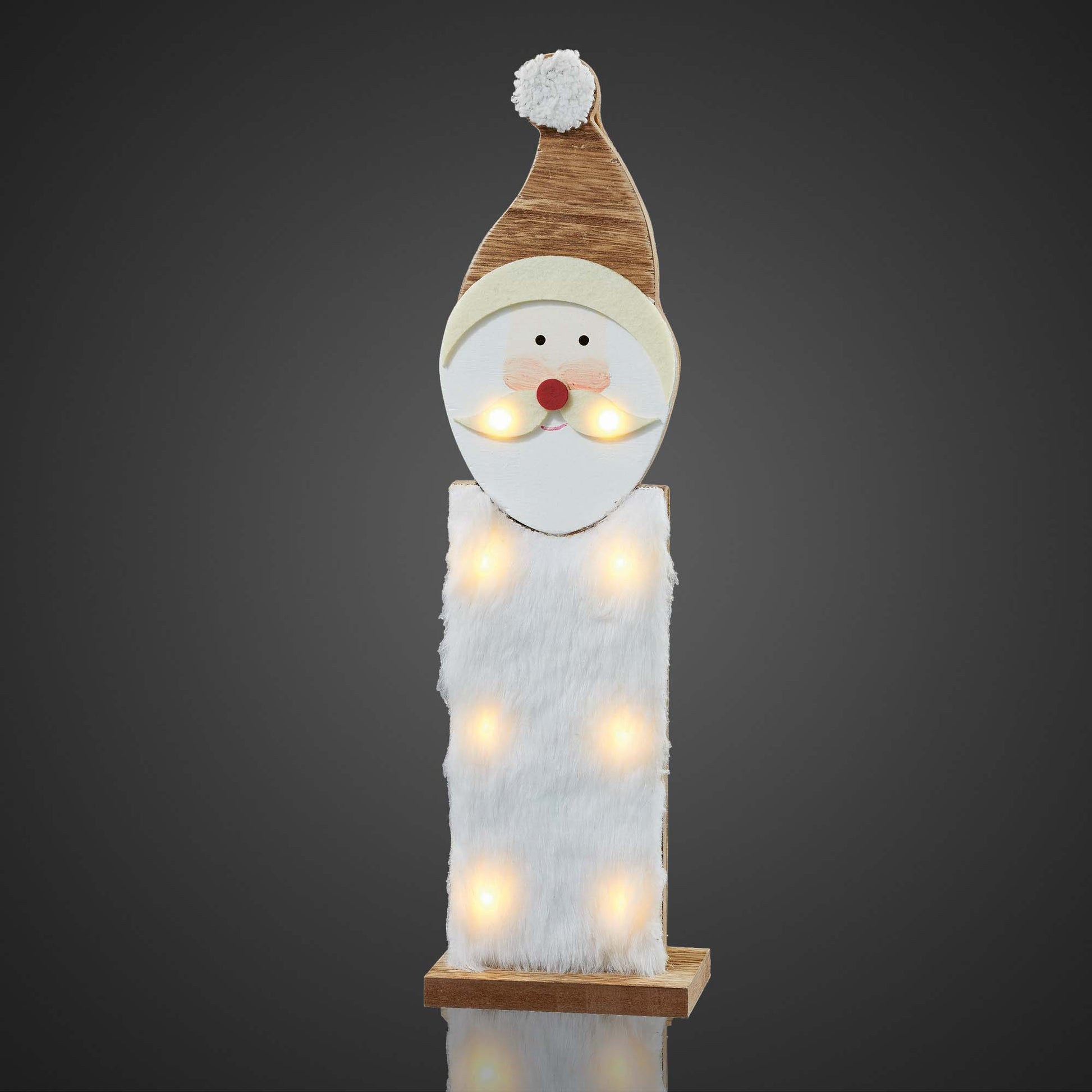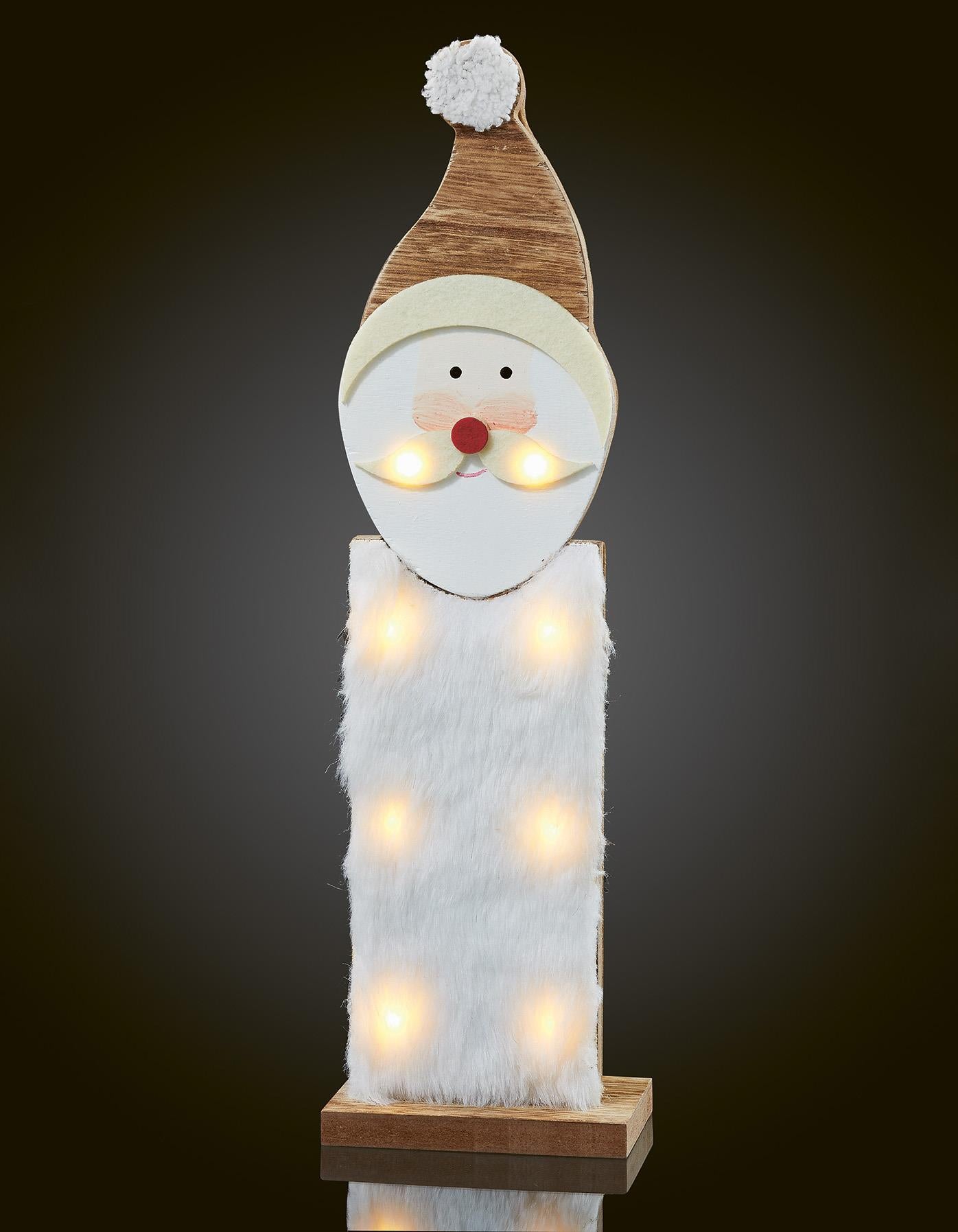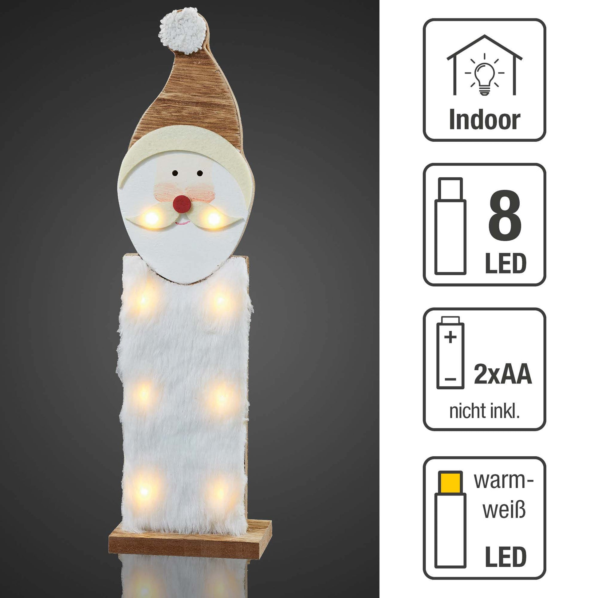 LED-Weihnachtsmann aus Holz, mit Kunstfell, 11x40cm, 8 LEDs ww, batteriebetrieben