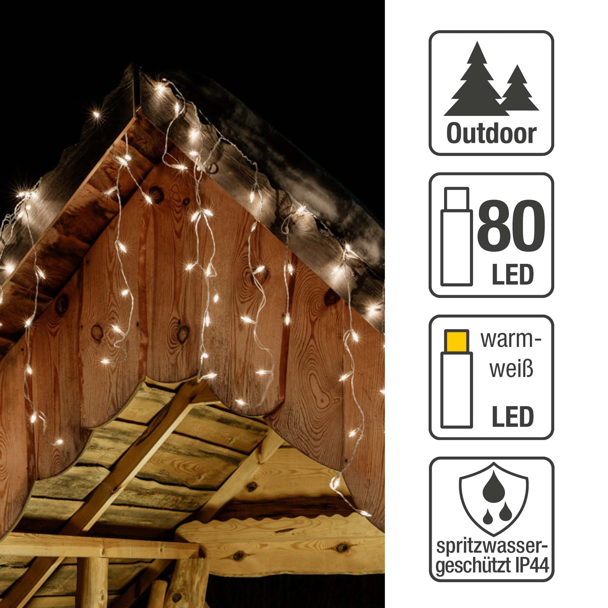 LED-Eislichtvorhang mit 80 warmweißen LEDs verlängerbar/erweiterbar