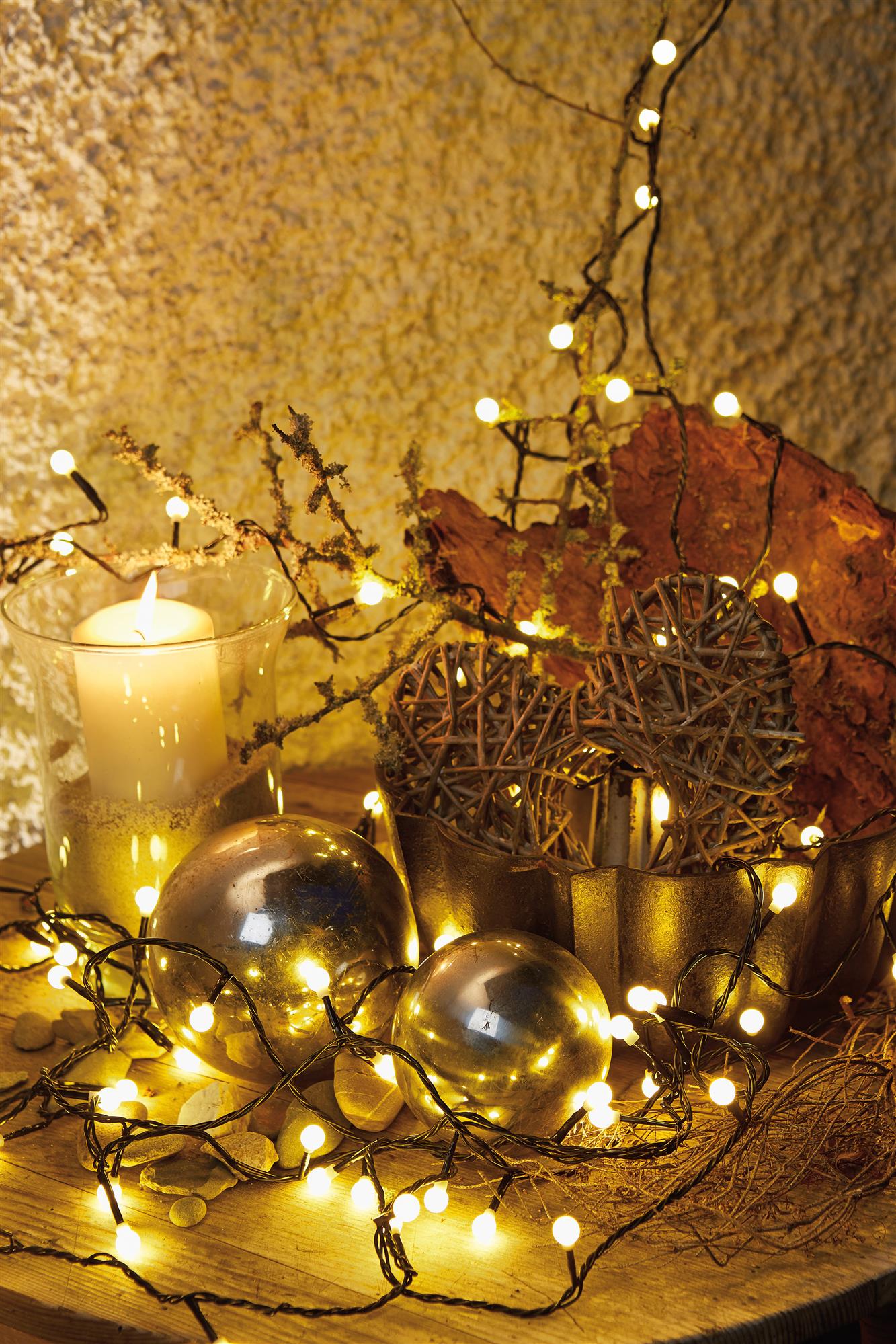 LED-Lichterkette mit Perlen, 80 LEDs ww, mit Timer, Außen-Transformator
