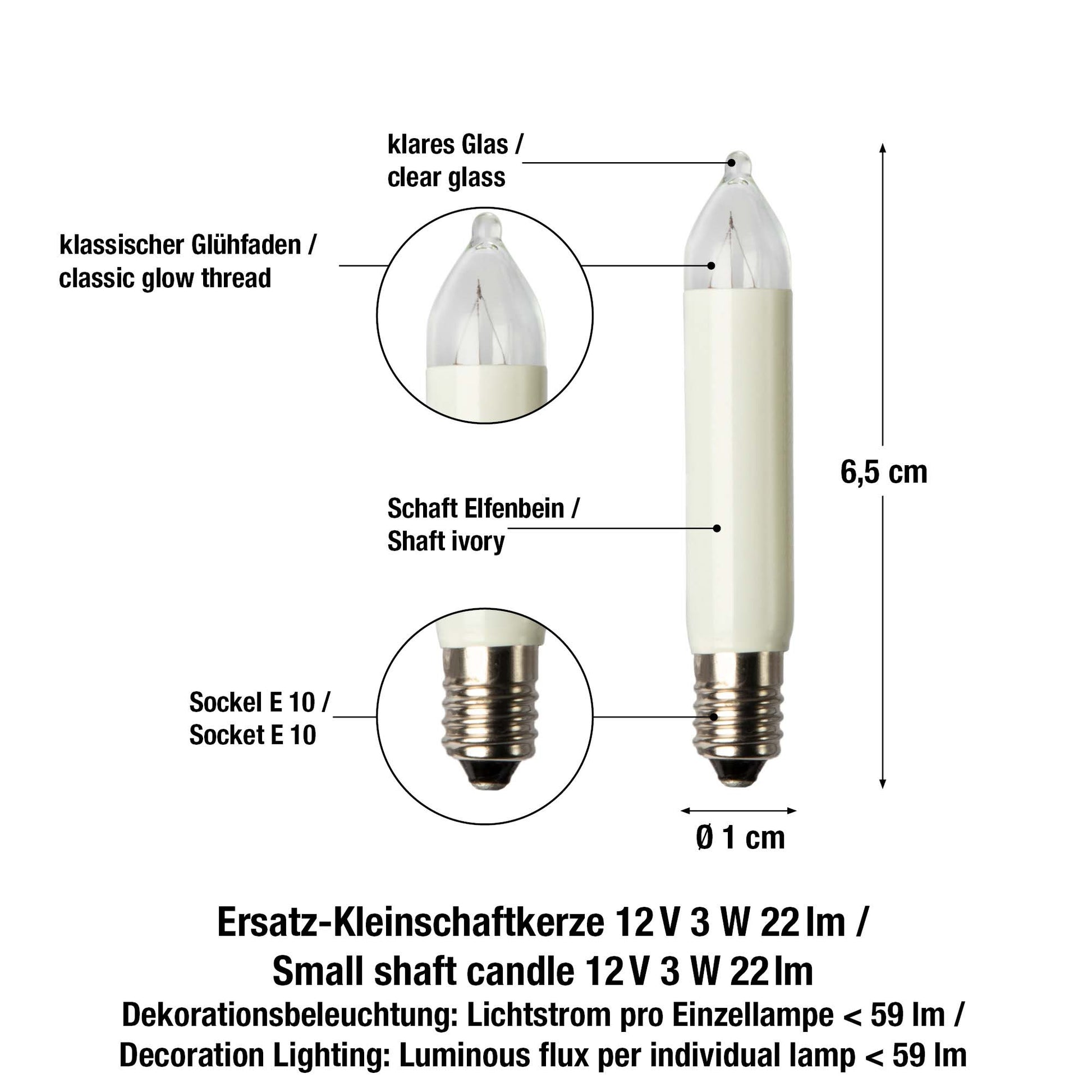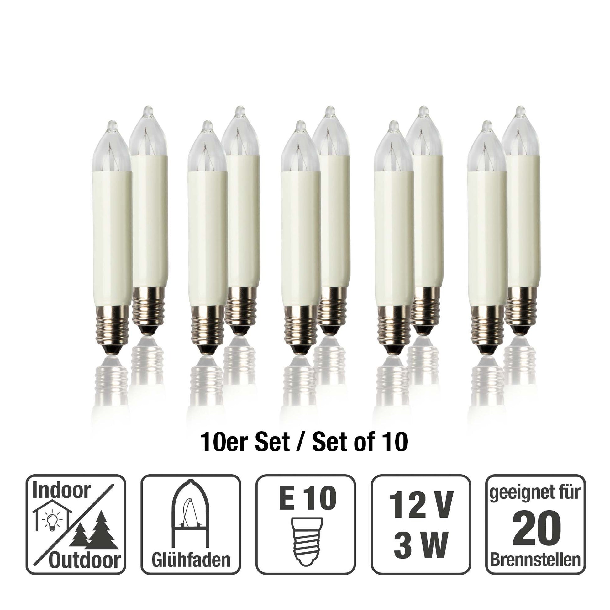 Ersatzkerzen Lichterkette 12V 3W für Lichterketten & Schwibbogen, 10 Stk Kleinschaftkerzen E10 für 20 Brennstellen innen & außen 933048