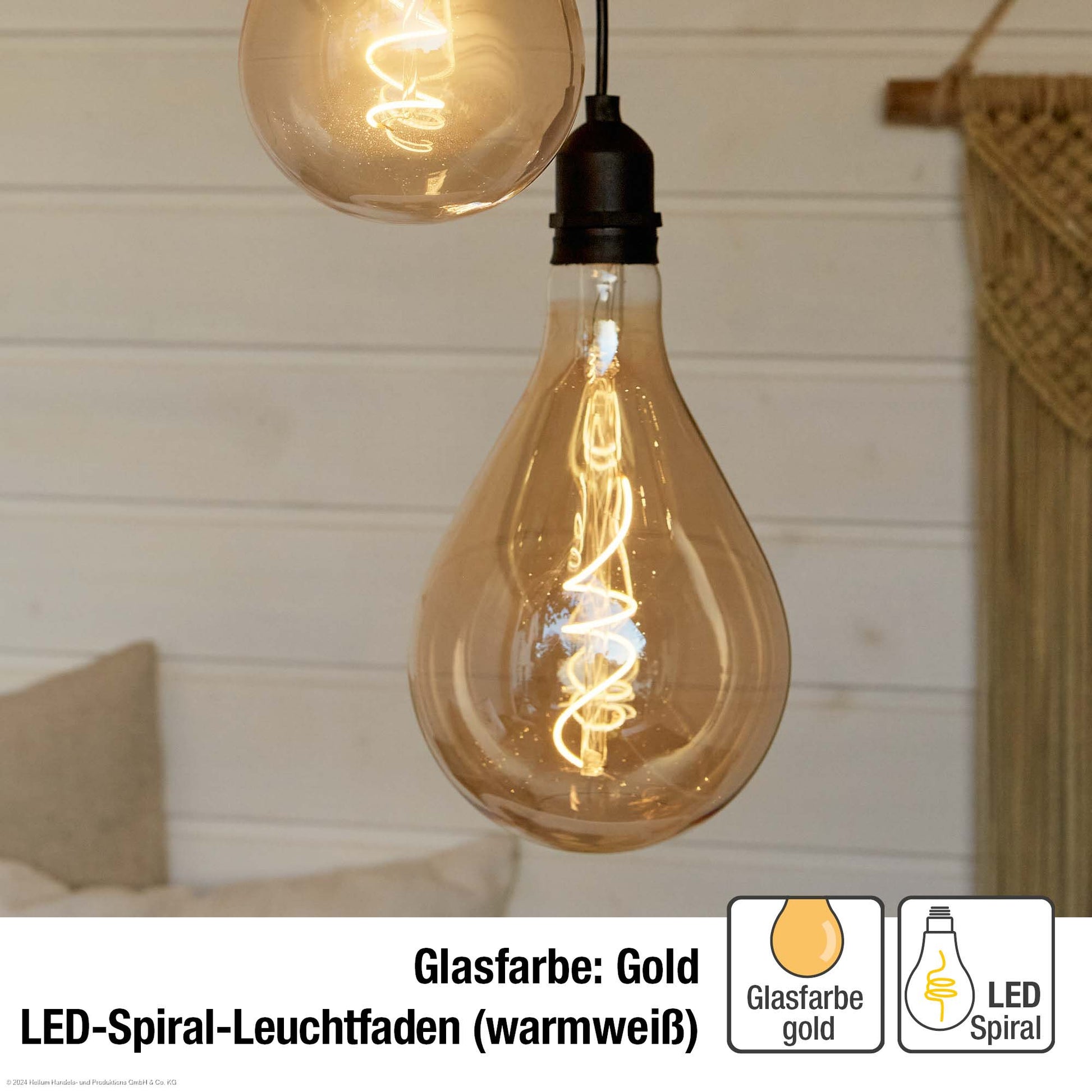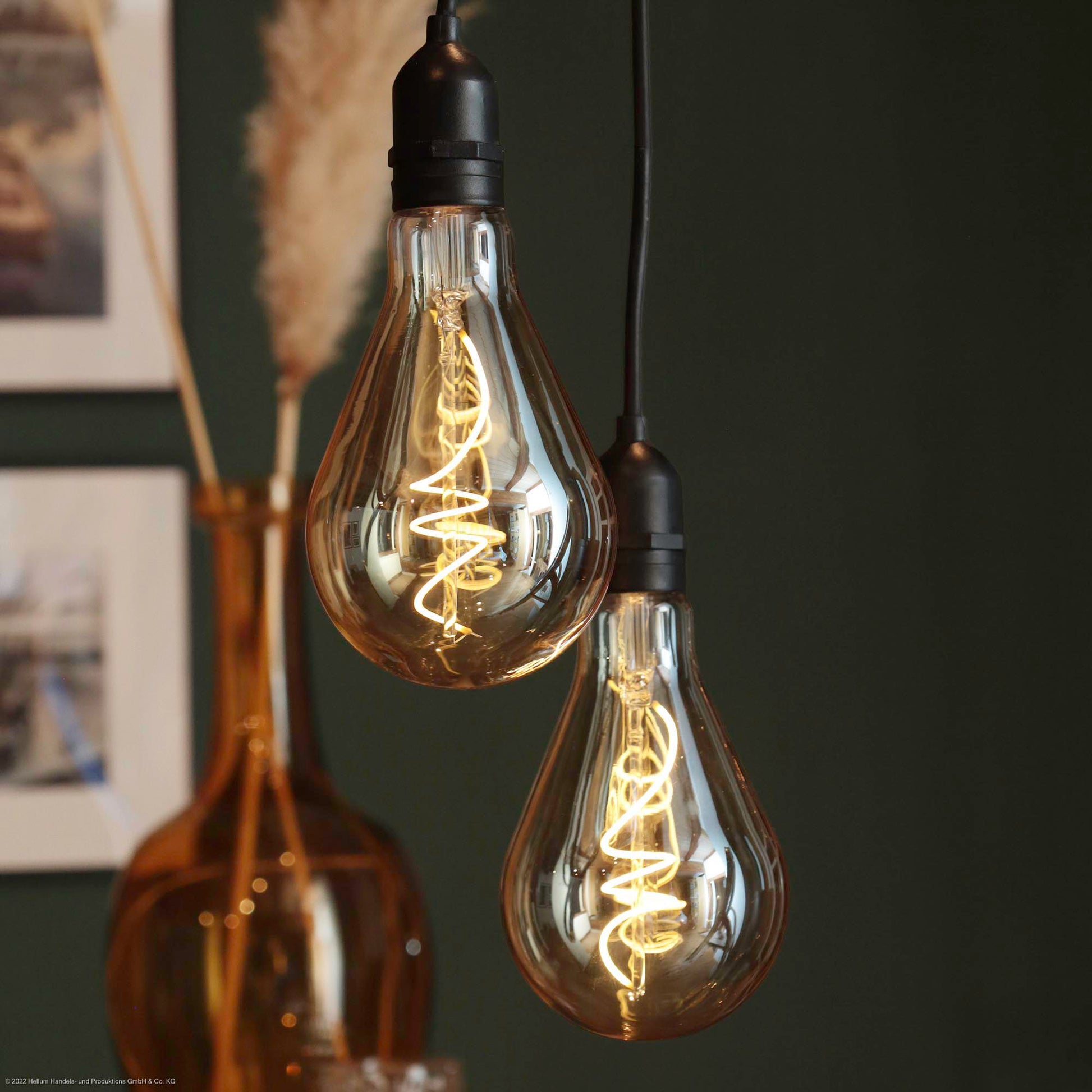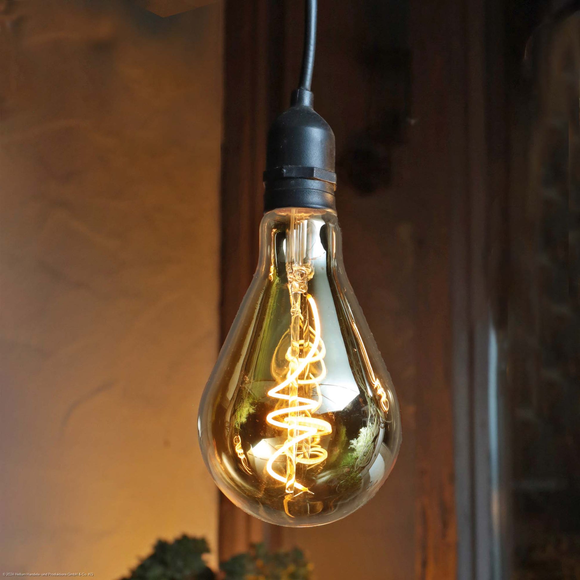 Hellum Hängelampe Outdoor Ø10x20 cm dimmbar, Batterie (nicht inkl.) & Fernbedienung, Retro goldene Glühbirne 524376