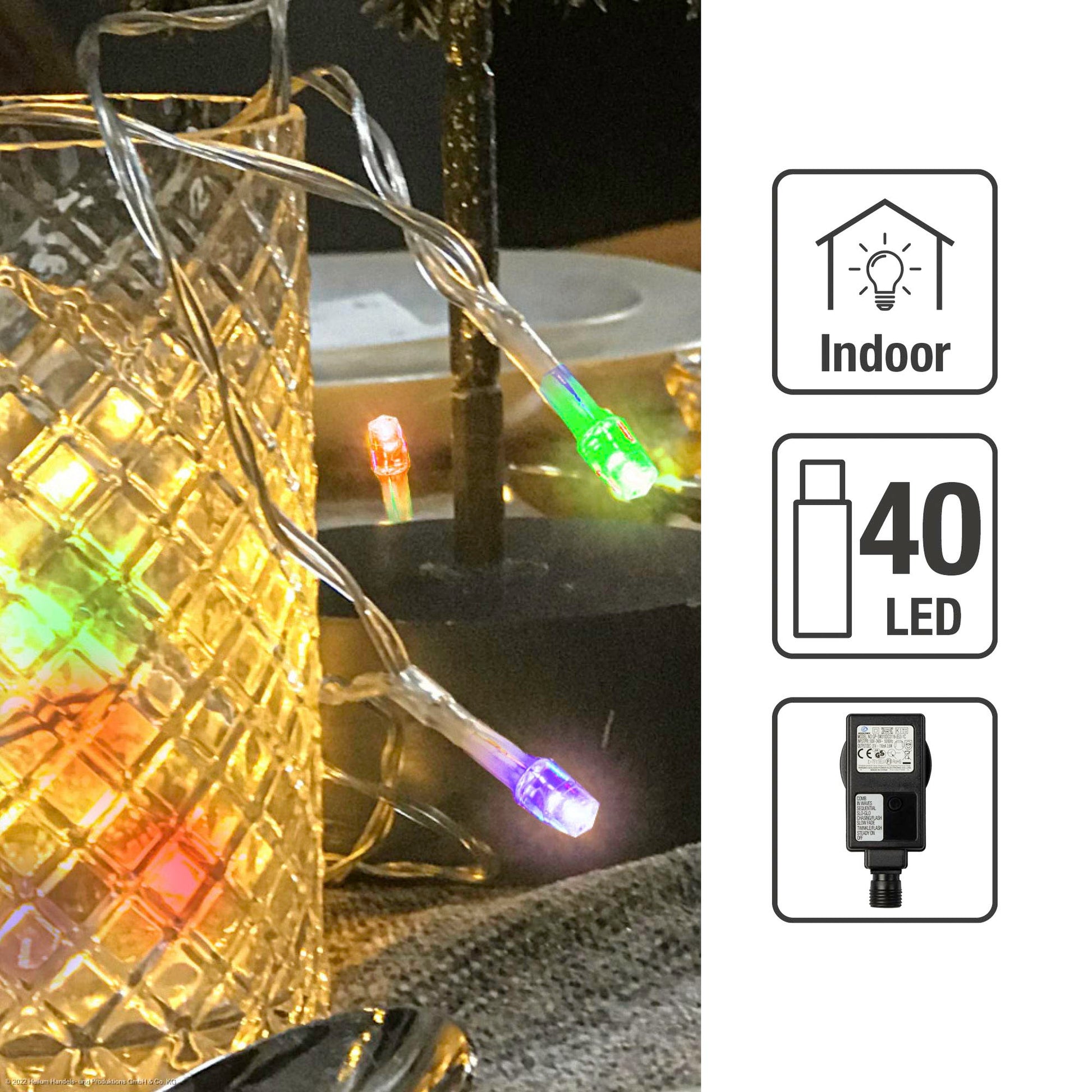 Hellum LED Lichterkette, 40 LEDs, bunt, beleuchtet 5,85m, 8 Leuchtmodi, für innen 560473