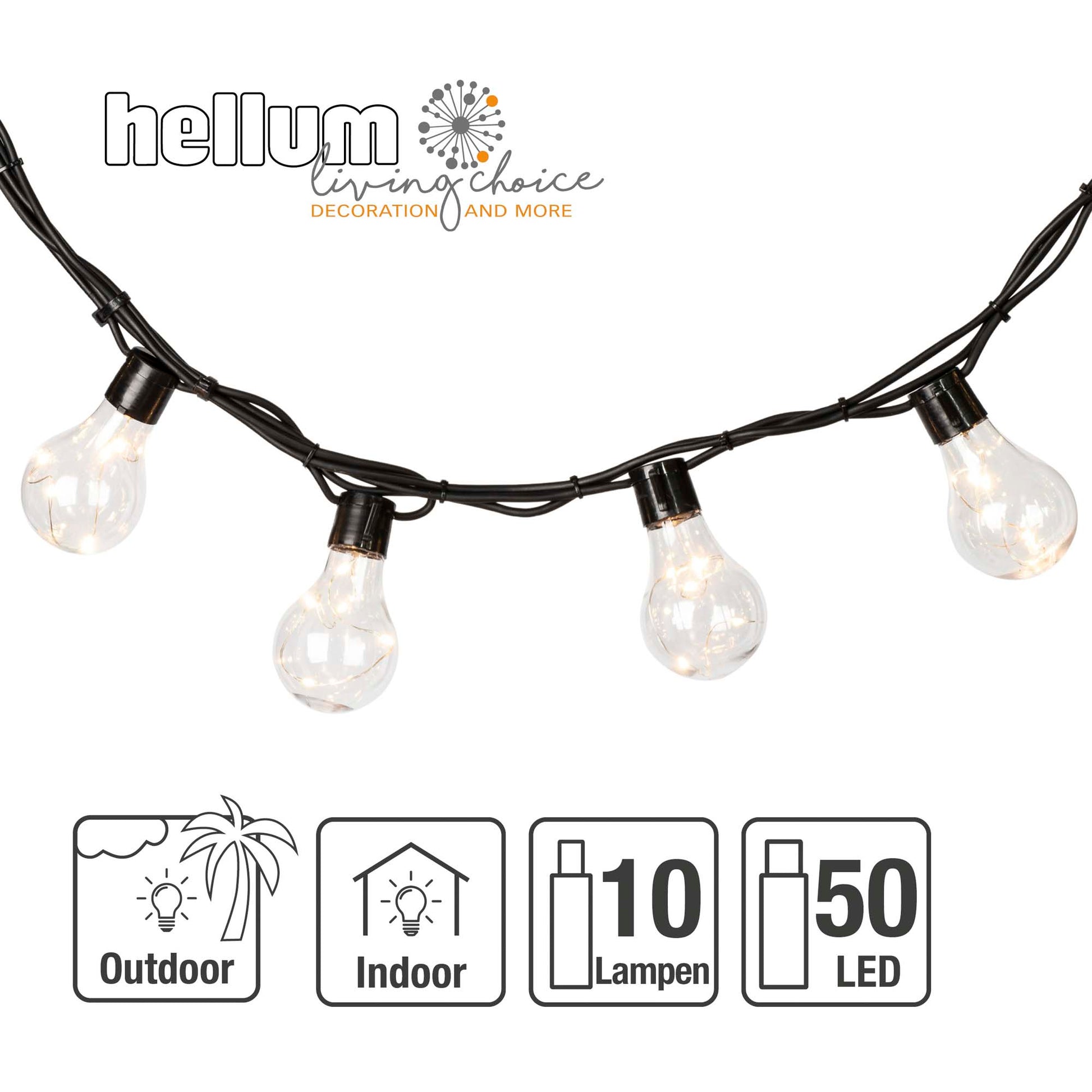 Dank ihrer robusten Bauweise lässt sich die Lichterkette sowohl innen als auch außen einsetzen, sodass Du sie flexibel für Partys, Feierlichkeiten oder entspannte Abende nutzen kannst. Die warmweißen Glühbirnen verbreiten ein charmantes Licht und verwandeln jeden Bereich in ein festliches Highlight. Ob über der Terrasse, im Wohnzimmer oder auf dem Balkon – die Hellum LED Party-Lichterkette ist der ideale Begleiter für stimmungsvolle Momente.
