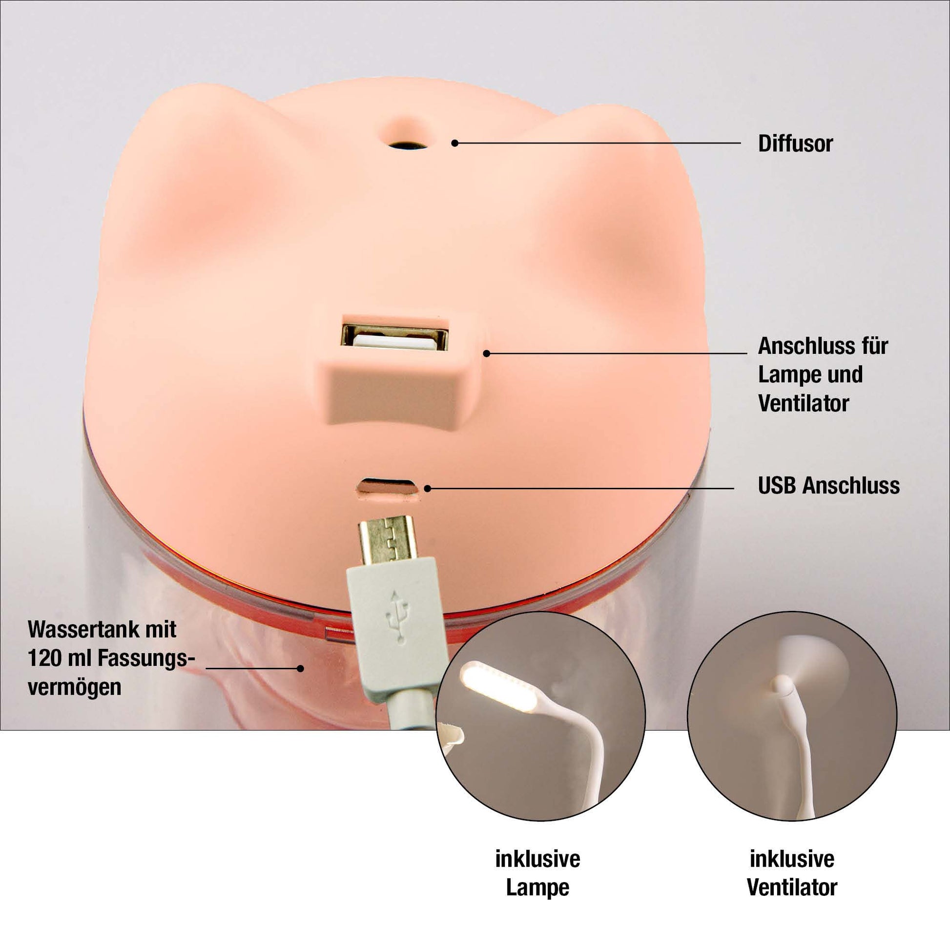 Mini Luftbefeuchter Katze Rosa mit RGB-Farbwechsel (120 ml) 9 x 12 cm