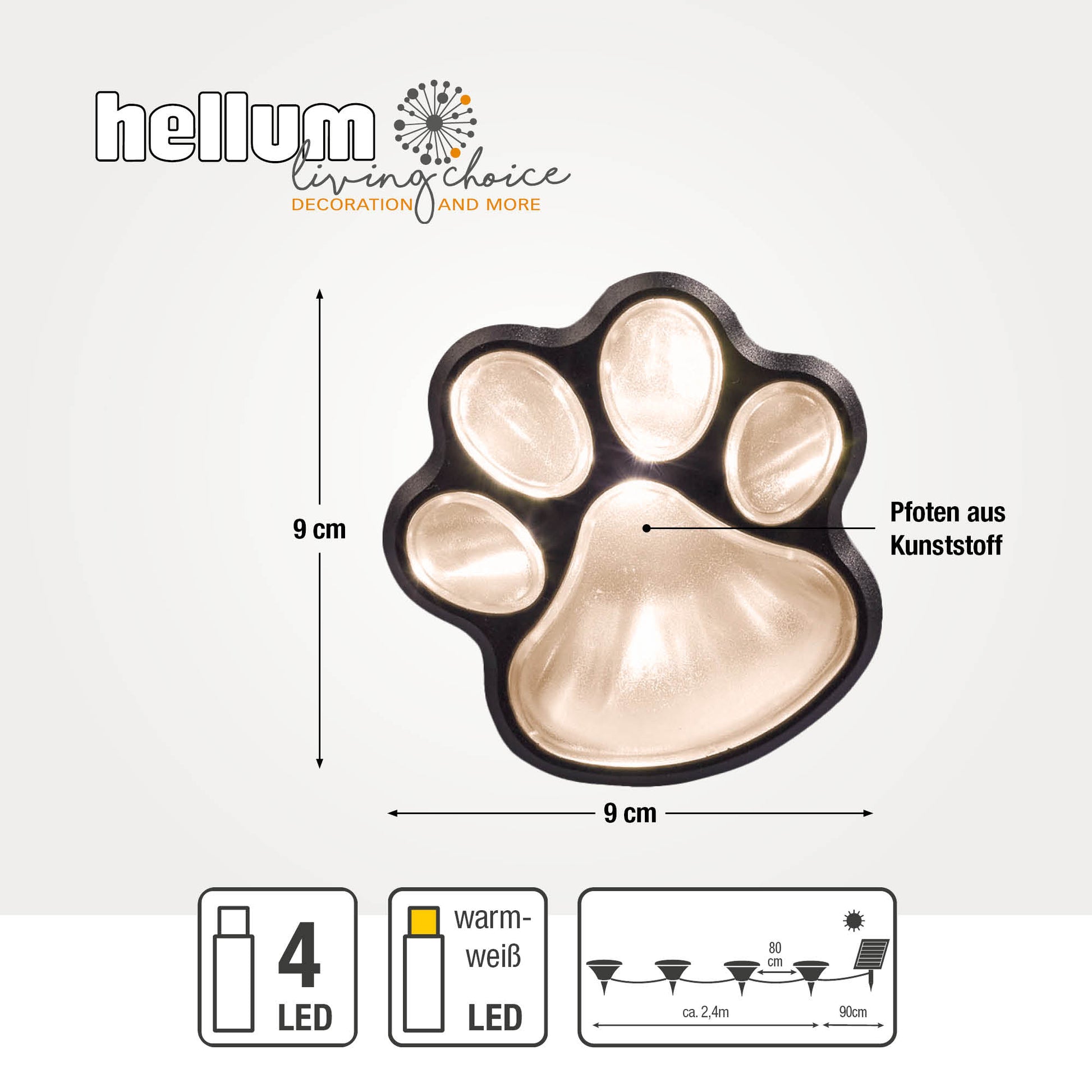 Hellum Solar Pfoten, 4 Pfoten 9x9cm, warmweiß, Erdspieß, für außen 523690