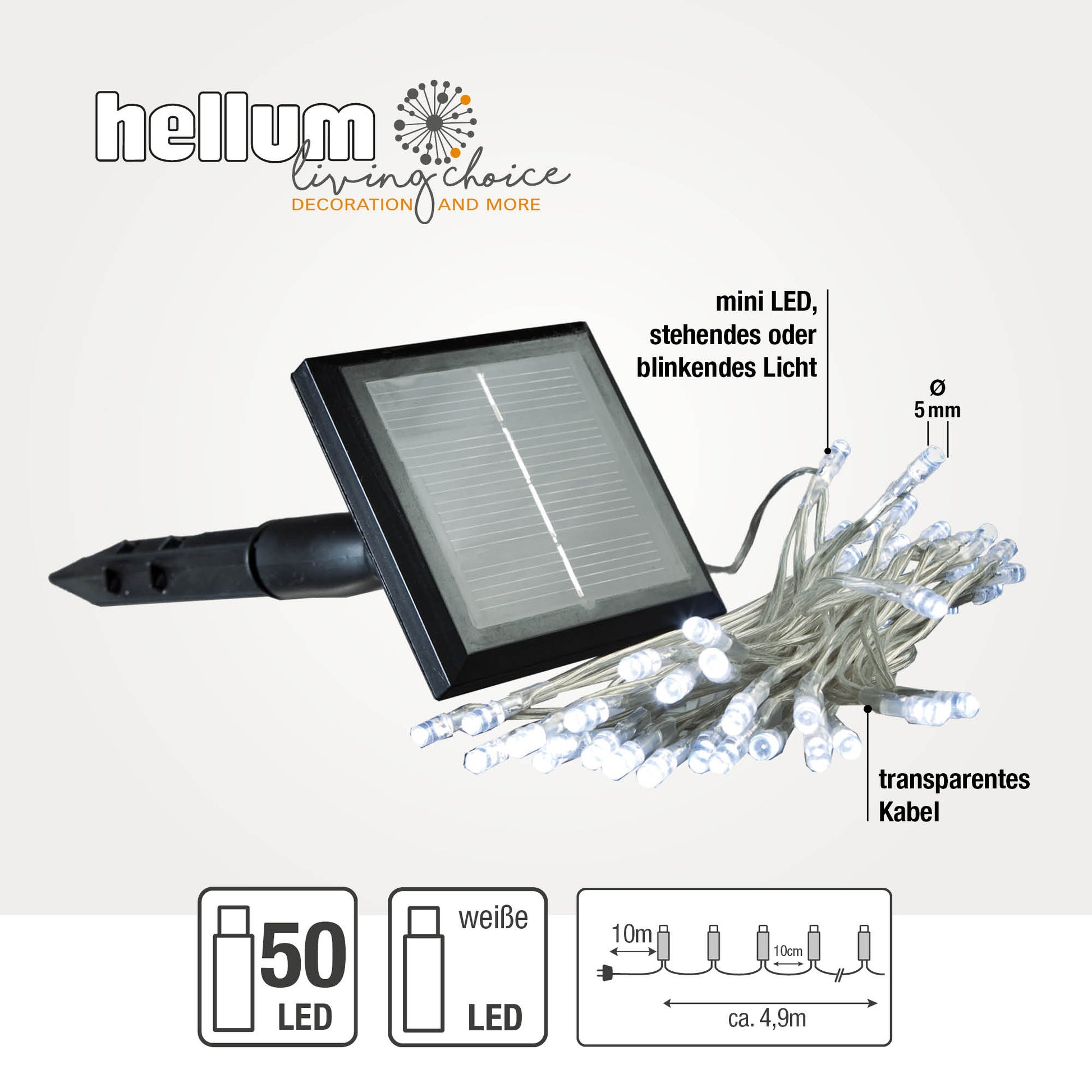 Hellum Solarlichterkette, 50 LEDs, kaltweiß, Blinkeffekt, Timer, für außen 151206