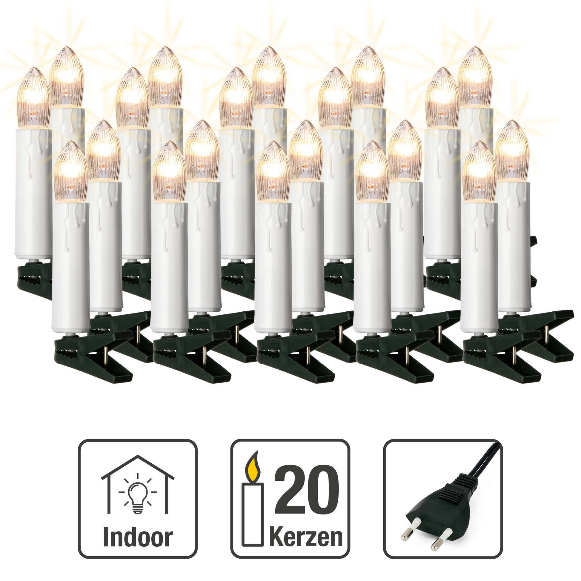 - Anzahl der Kerzen: 20 weiße LED-Kerzen mit Wachstropfenoptik