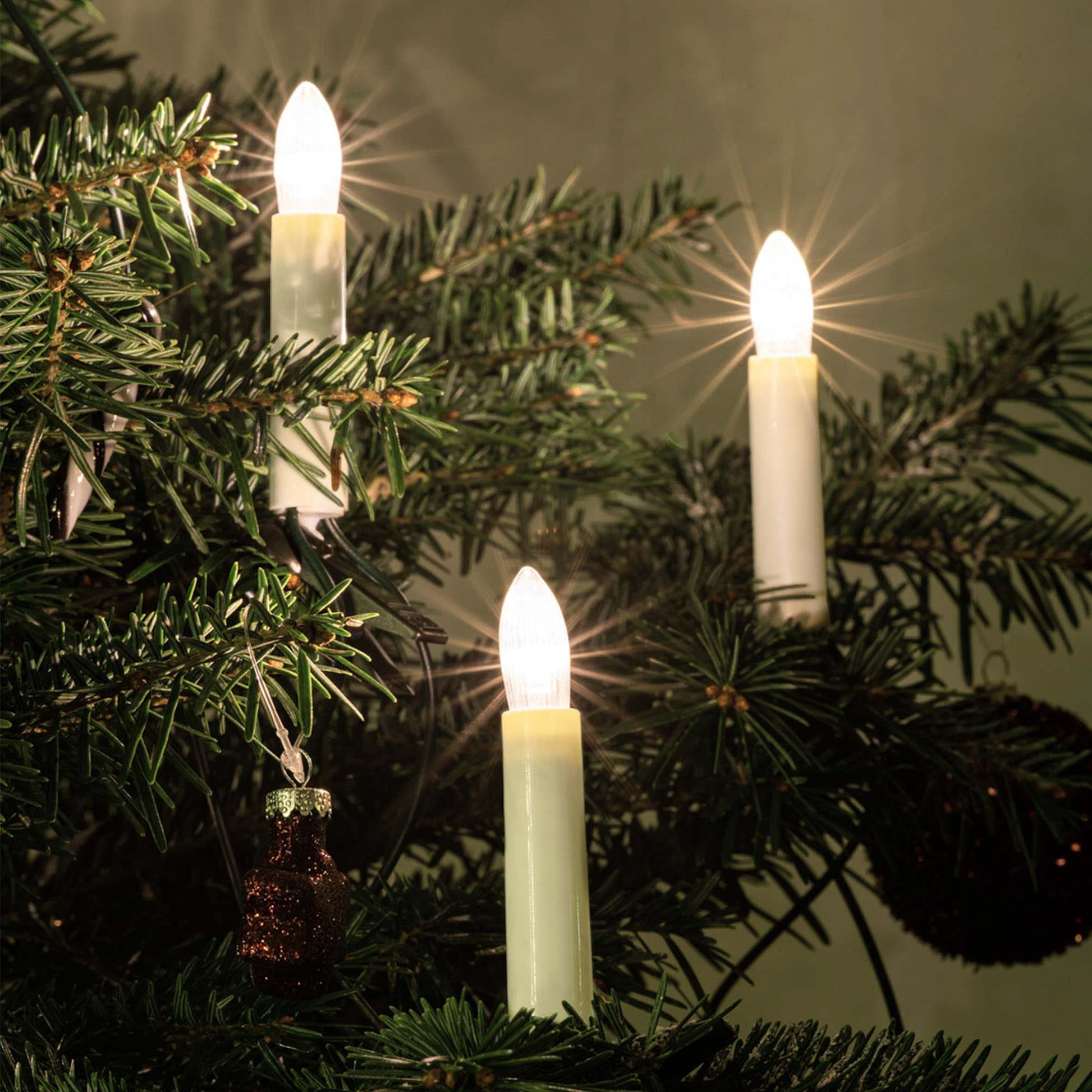 Hellum Weihnachtsbaum Lichterkette Innen – 30 weiße Kerzen mit Wachstropfenoptik, 11,6m beleuchtet, Clip-Befestigung, grün, Steckerbetrieb