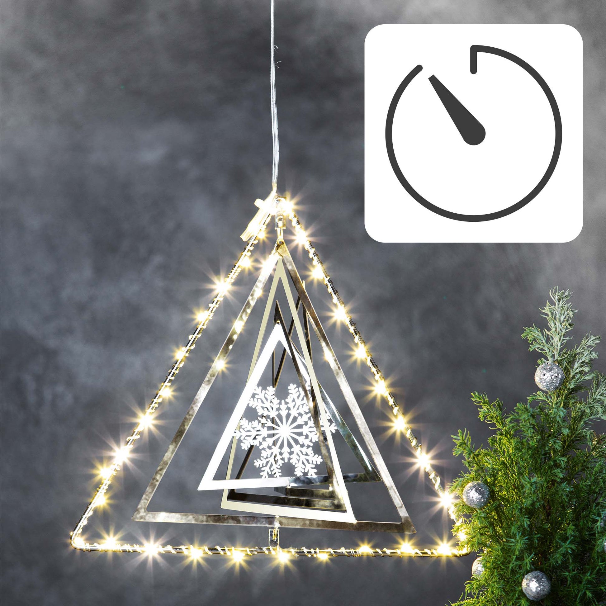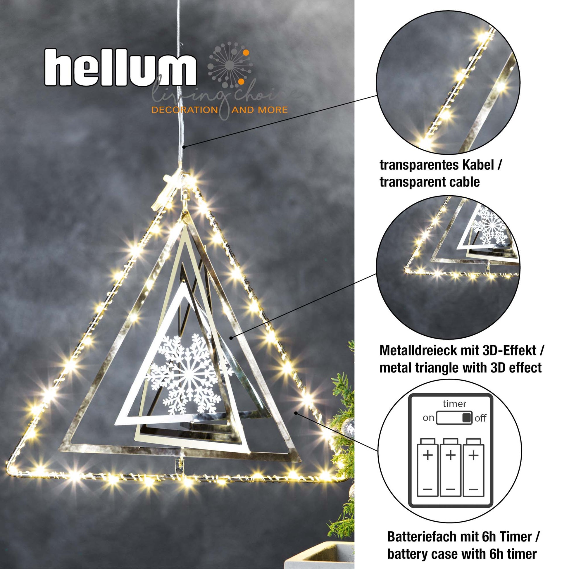 LED-3D Metall-Dreieck, 30 LEDs ww, batteriebetrieben