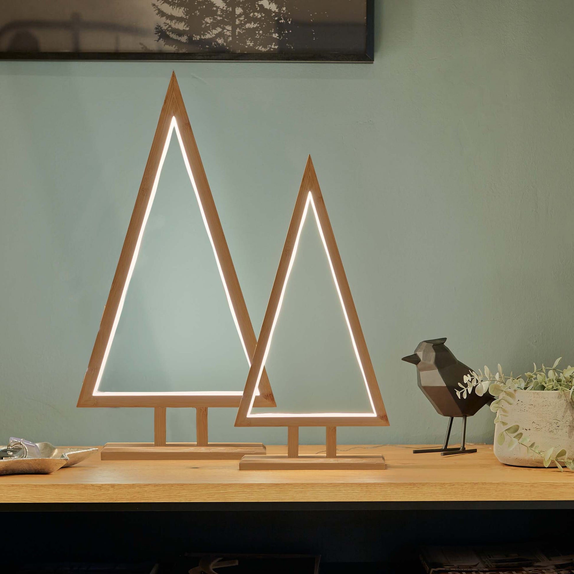 Pyramide aus Bambus, natur, H: 45cm, mit LED-Neon Lichtschlauch, Innen-Transformator