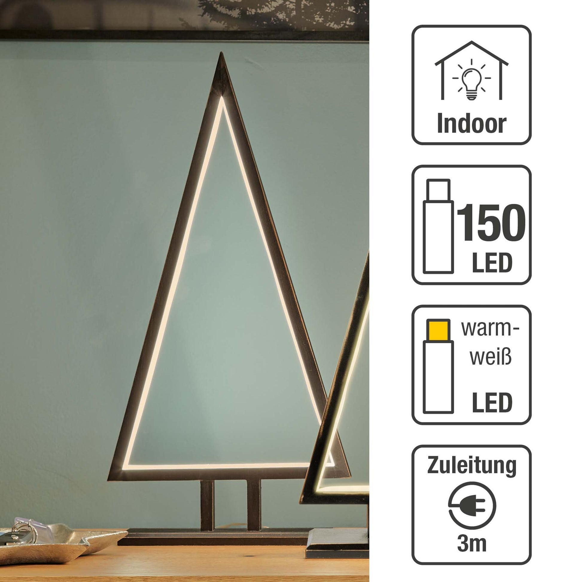 Pyramide aus Bambus, schwarz, H: 60cm, mit LED-Neon Lichtschlauch, Innen-Transformator